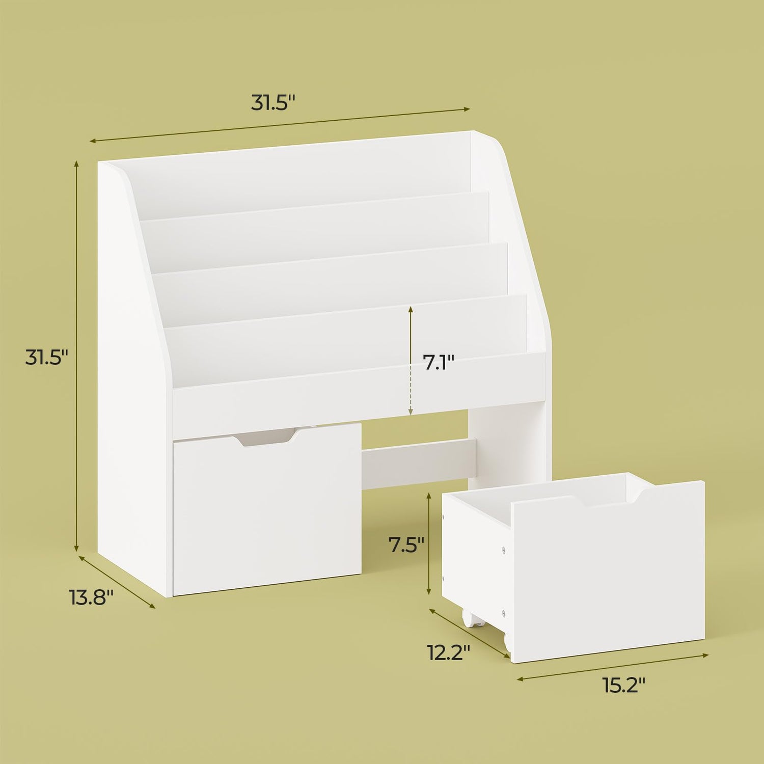- Ample Storage Space: 4 tiers of open bookshelves and 2 removable drawers can help organize books, toys, puzzles and other items to make a cluttered playroom neat and orderly. The bookshelf section can be used to store books and the bottom drawer with hidden wheels can be used to store toys
