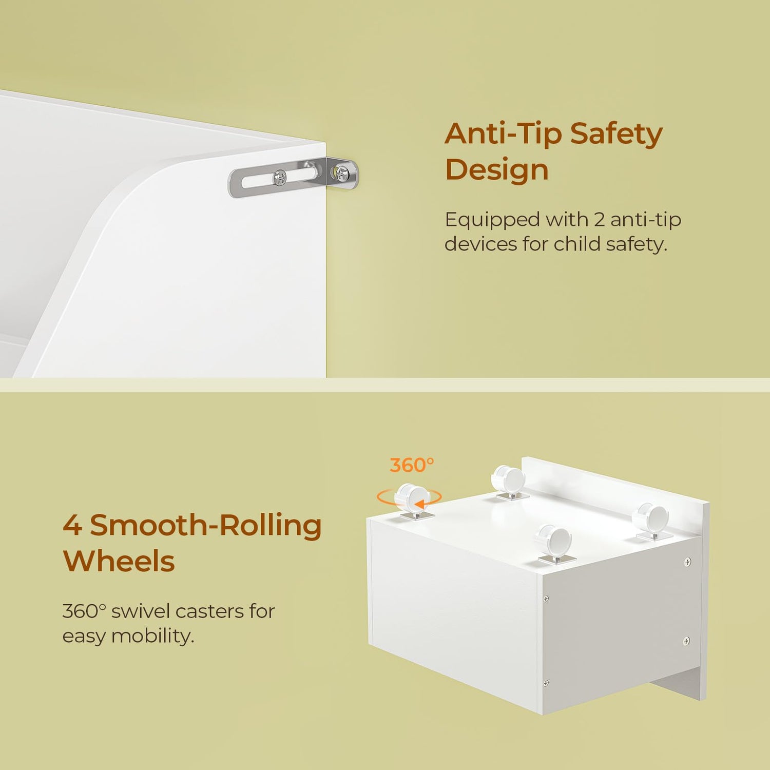 - Moveable Drawers: 2 moveable storage drawers with hidden wheels for children's toys, help you quickly organize and sort toys and books, and also easy for children to access the books and toys, which will increase children's interest in organizing books and toys