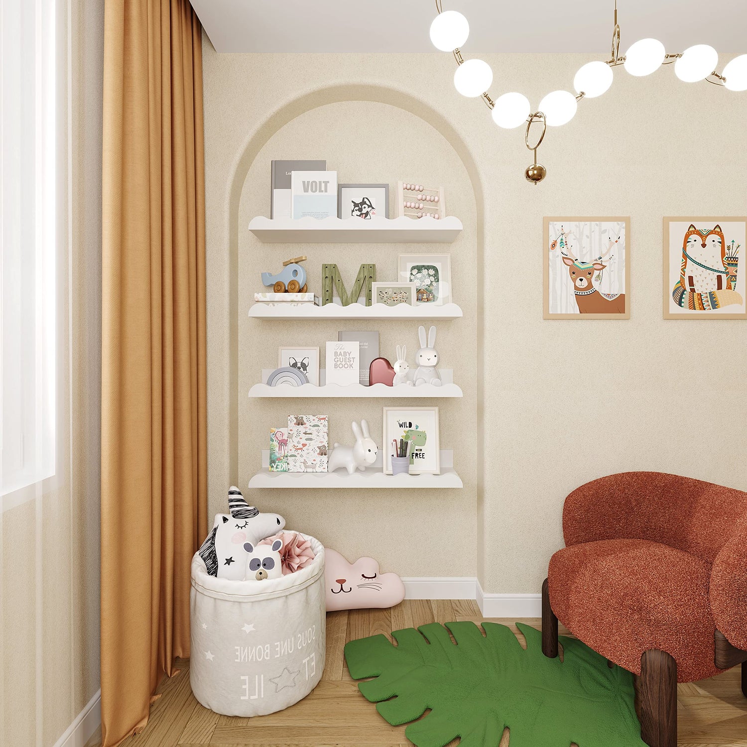 - Multi-functional Design: This set of four Kids' Bookshelves serves as both book storage and a picture ledge shelf, providing a versatile solution for your child's room. It allows you to showcase favorite books, toys, and photo frames all in one place.