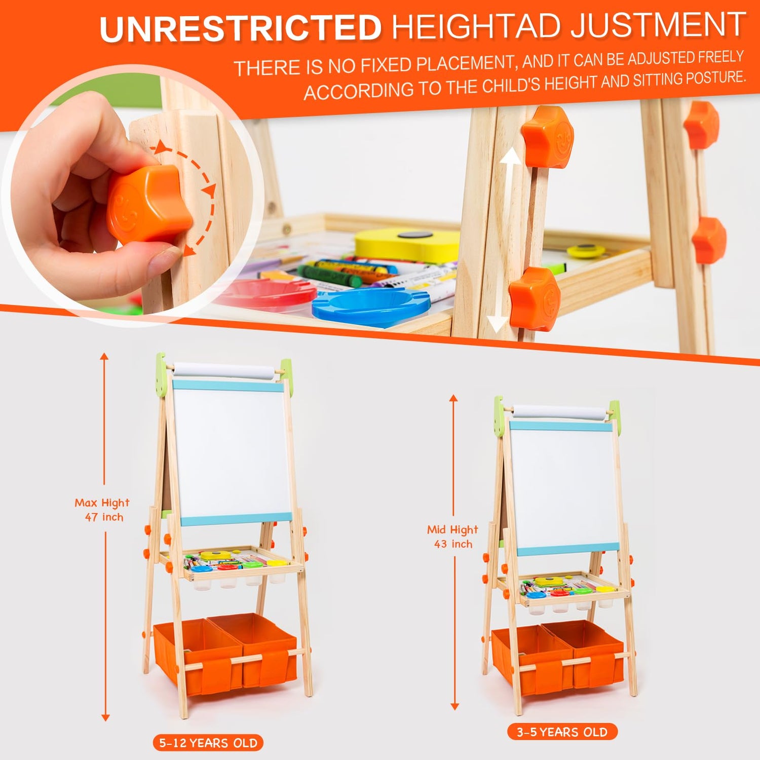 - Height Adjustable for Different Age Groups: Featuring a unique overall height adjustment function, ensuring the drawing board is suitable for children of different age groups. It adapts to their growth, maintaining the optimal drawing experience(Recommend for kids 3-12/Height: 43 inches to 48 inches).