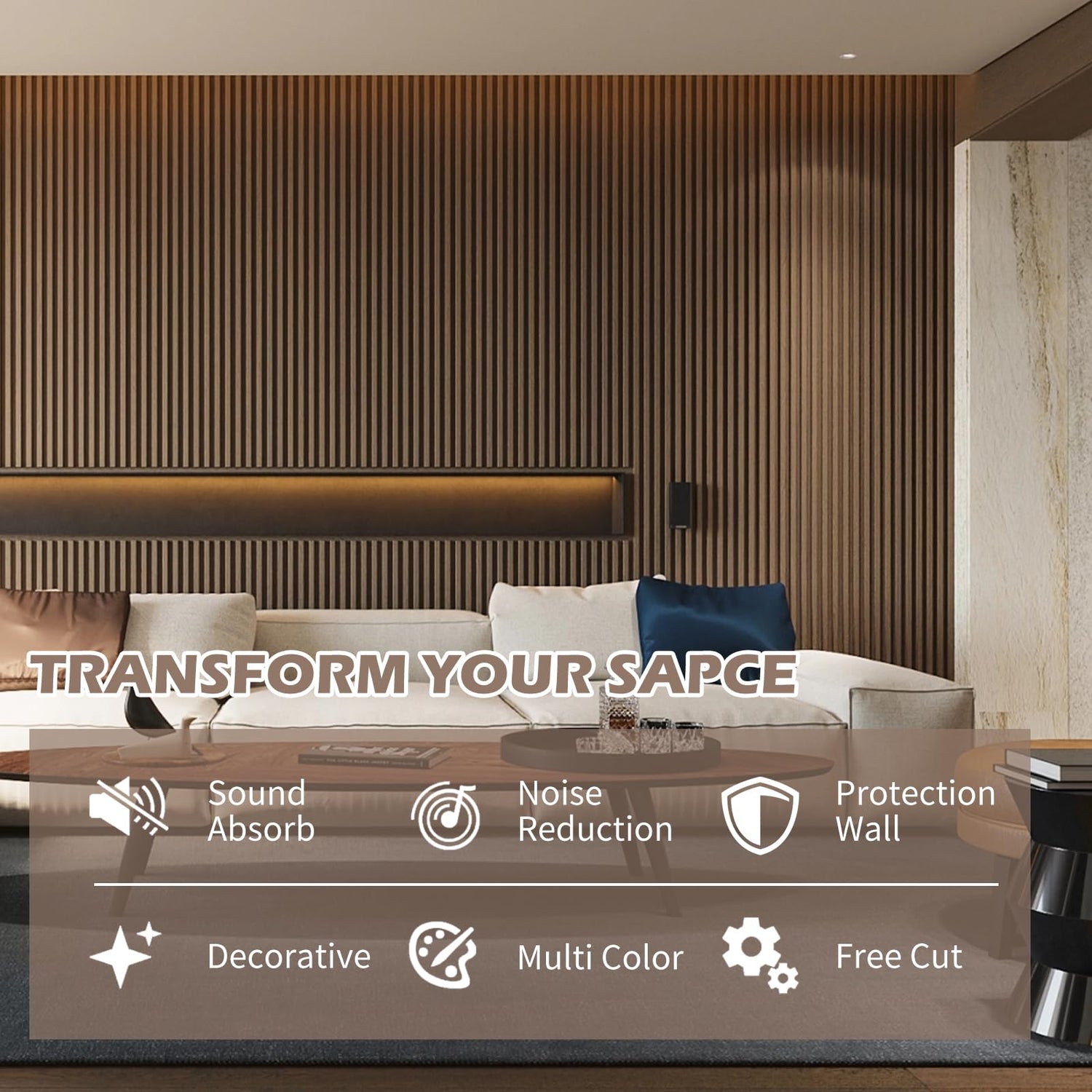 - Superior Acoustic Performance:Our 3D wall panels have a wood veneer made of oak or walnut,featuring a sophisticated fluted panel design, By effectively reducing noise, eliminating bothersome echoes and reflections, our wood panels for wall enhance the clarity and fidelity of sound, ensuring you can indulge in the finest audio quality.