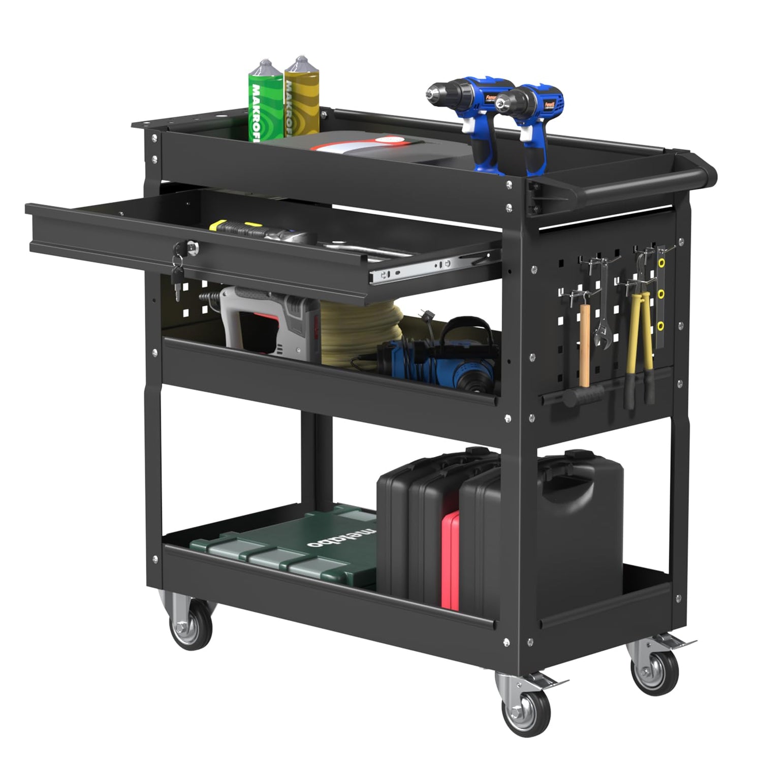 Kieperi 3 Tier Rolling Tool Cart, Rolling Tool Chest on Wheels for Mechanics,400 LBS Tool Cart with Drawers for Garage, Warehouse & Repair Shop (Black)