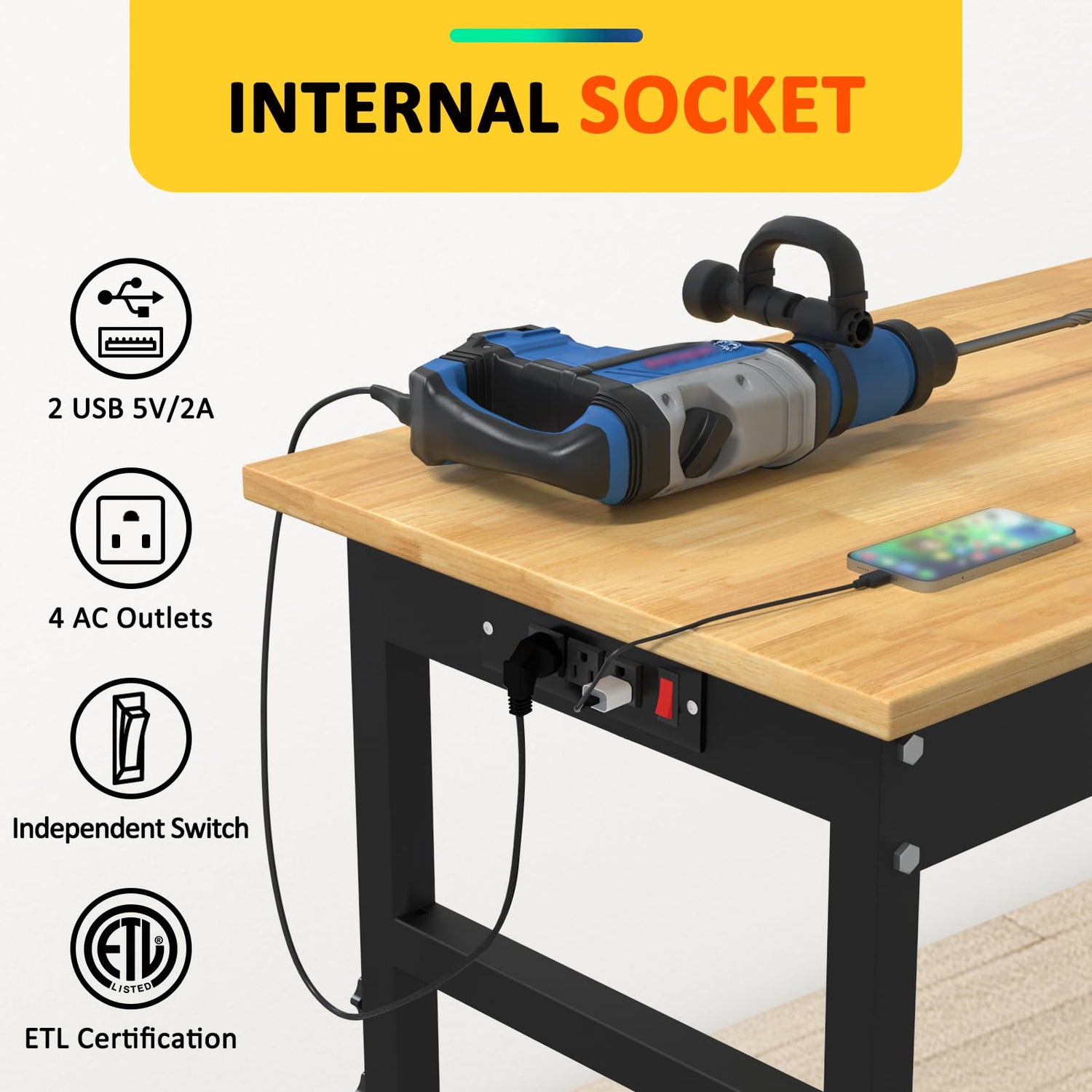 - 【Integrated Power Outlet】Built-in power outlet provides convenience for your projects. A variety of power tools and lamps can be used directly at the workstation, eliminating the need to search for available outlets.