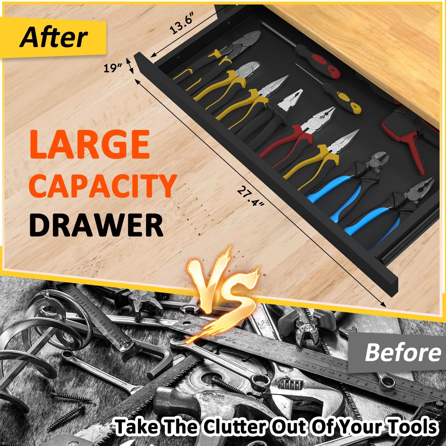 - 【Sturdy & Durable】The workbench is made of high-quality wood with fine workmanship. Upgraded with thickened table top and thicker steel frame, the weight capacity is up to 2,000 pounds, which can withstand the rigors of daily use.