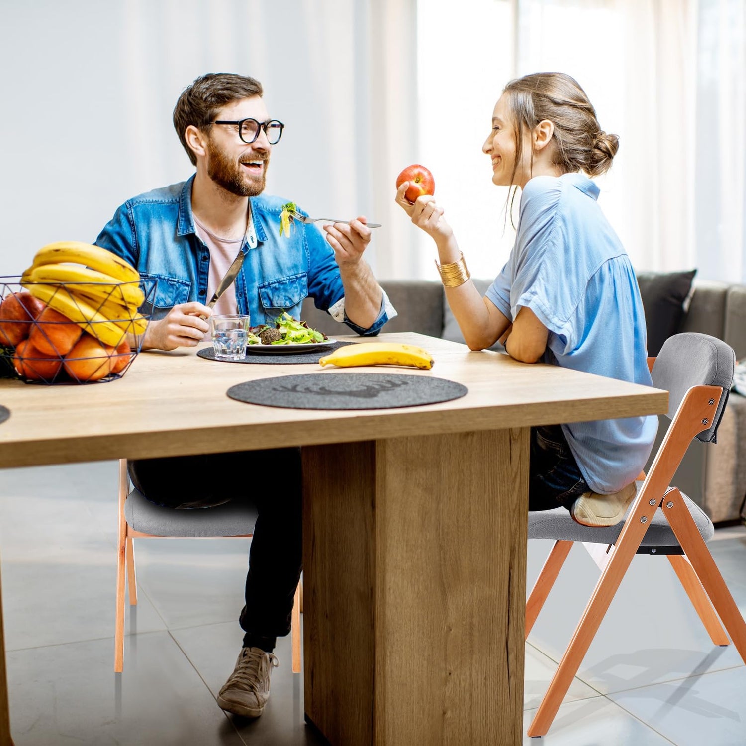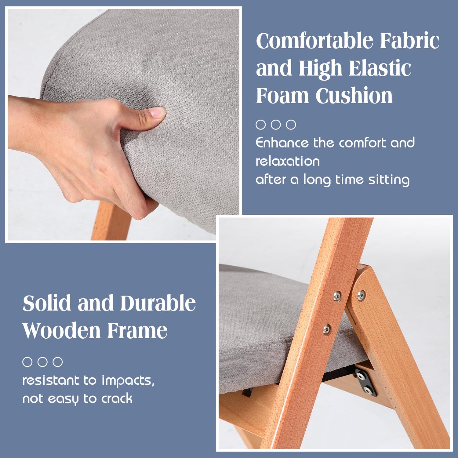 Kigley 2 Pack Folding Wooden Chairs with Padded Seats Foldable Dining Chairs Removable Cover Padded Stackable Wood Single Comfortable Chair for Home Office Wedding Party Events Indoor (Light Gray)