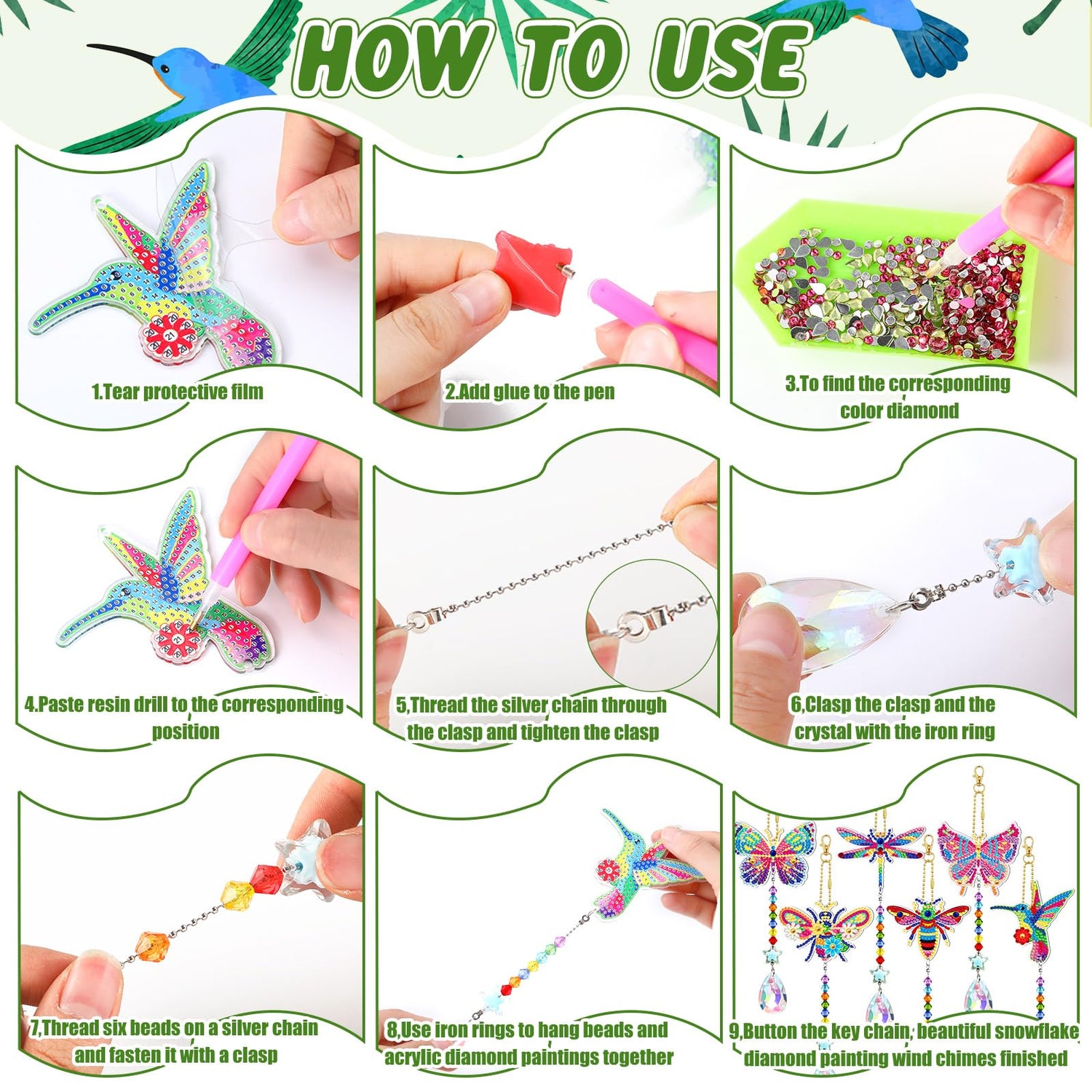 - 6 Exquisite Designs: you will receive 6 pieces of diamond painting suncatcher in different styles, including bee, dragonfly, butterfly and hummingbird, equipped with some rhinestones, hanging decorative pendants, hanging bead chains and tools, enough quantity and various shapes to meet your decor needs and replacements, and you can also share some with your friends or family members