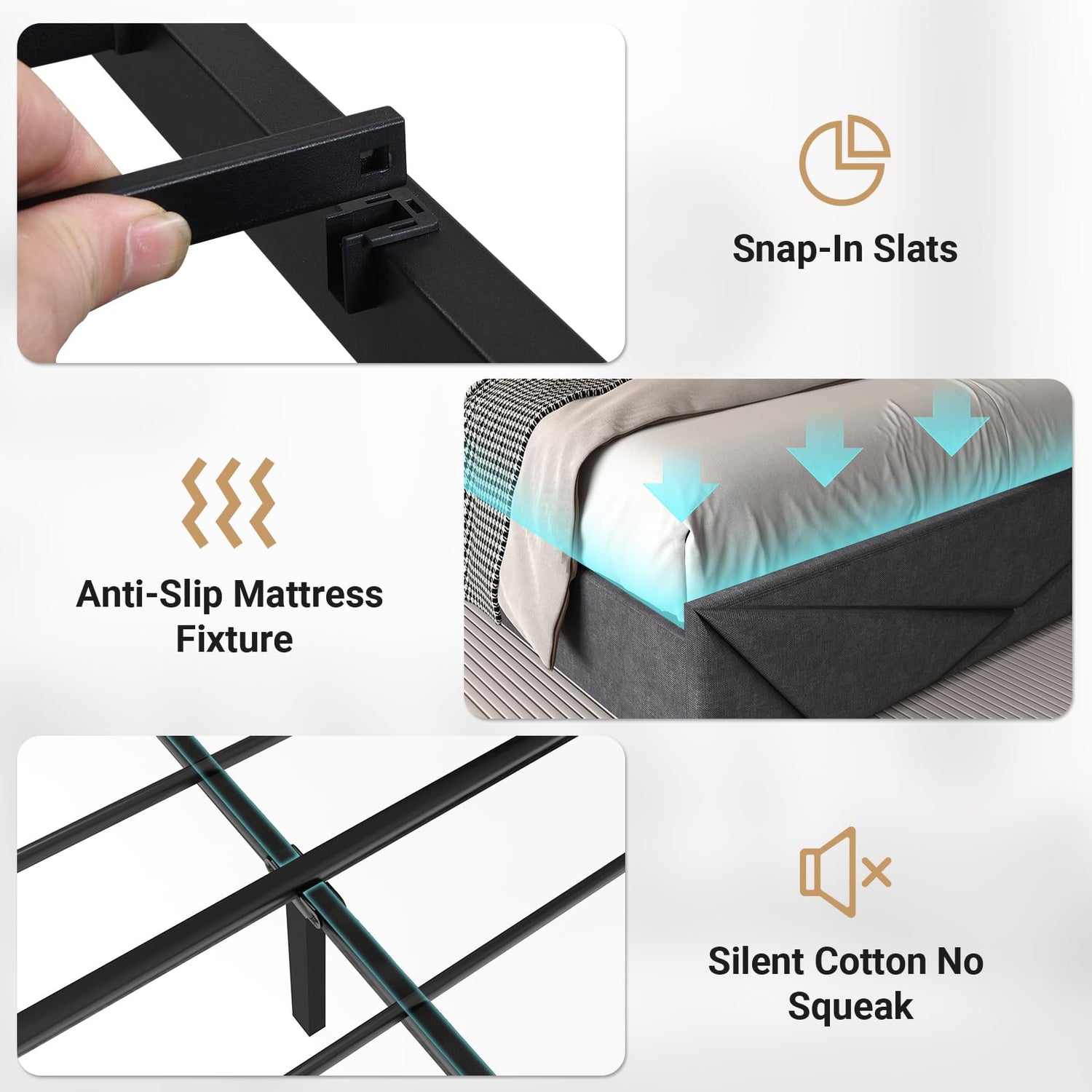 - 【Robust and Durable Construction】Crafted from a solid metal frame, this full bed boasts exceptional durability and a load-bearing capacity of up to 800 lbs. Each metal slat is securely mounted, ensuring a peaceful and noise-free sleep experience.