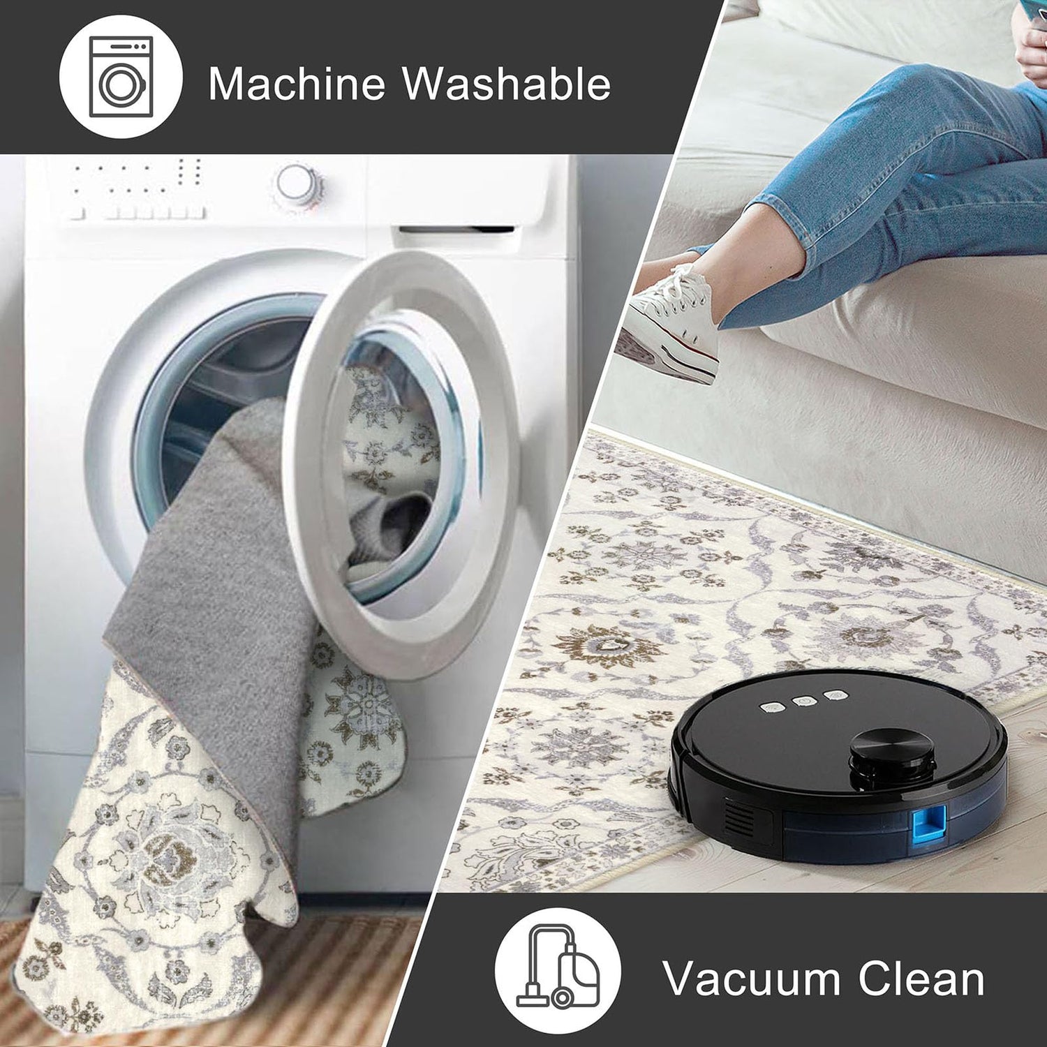 - Easy Maintenance: The machine- washable rug makes cleaning hassle-free. For daily care, vacuum, sweep, or wipe with a cloth. Use a low-speed or robotic vacuum, as its thin, lightweight design may shift with stronger vacuum. Avoid bleach to preserve color.