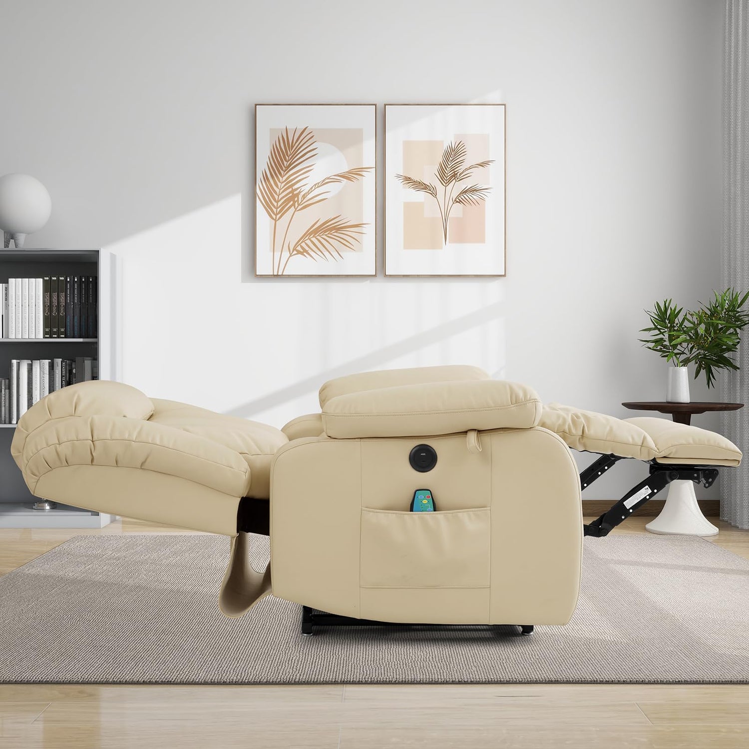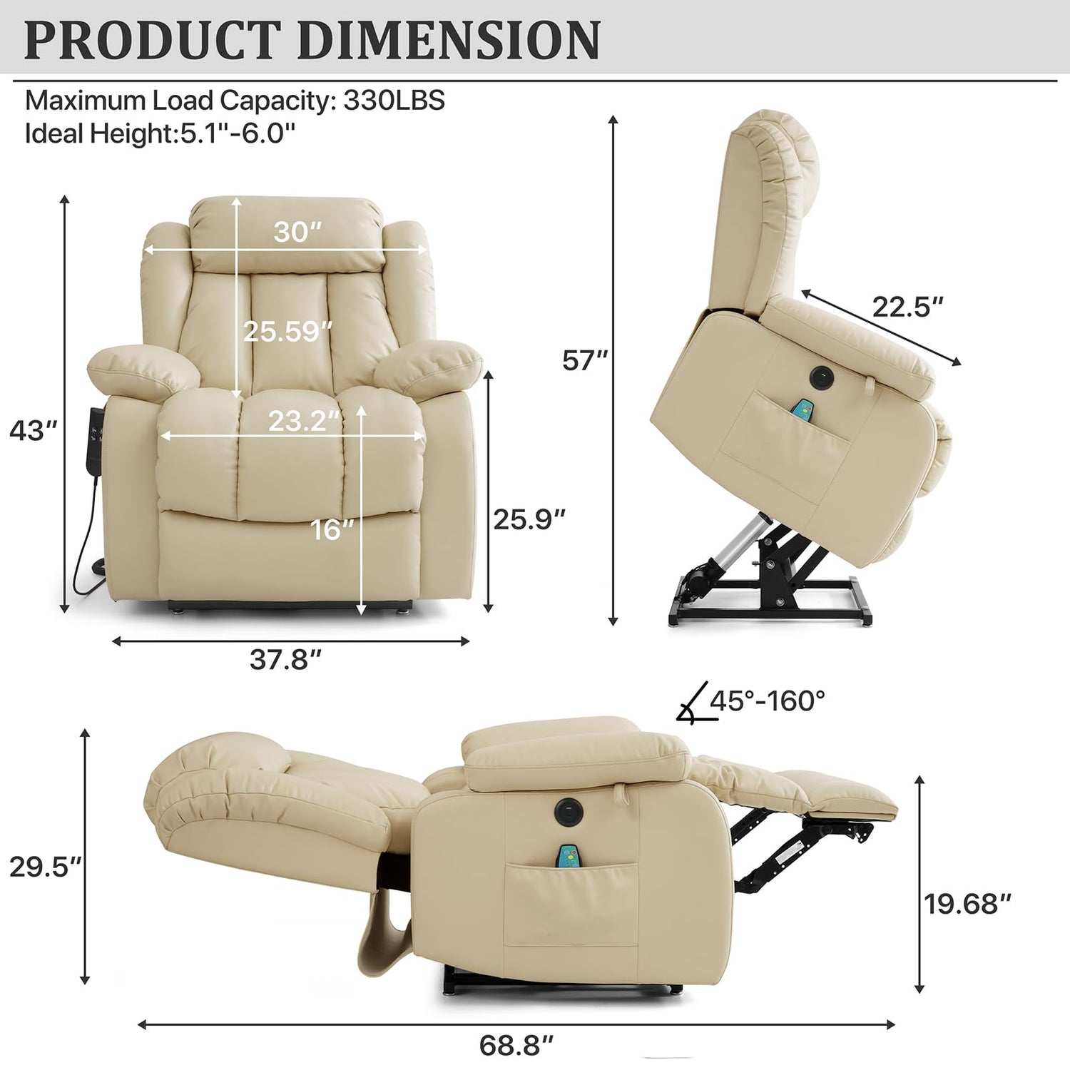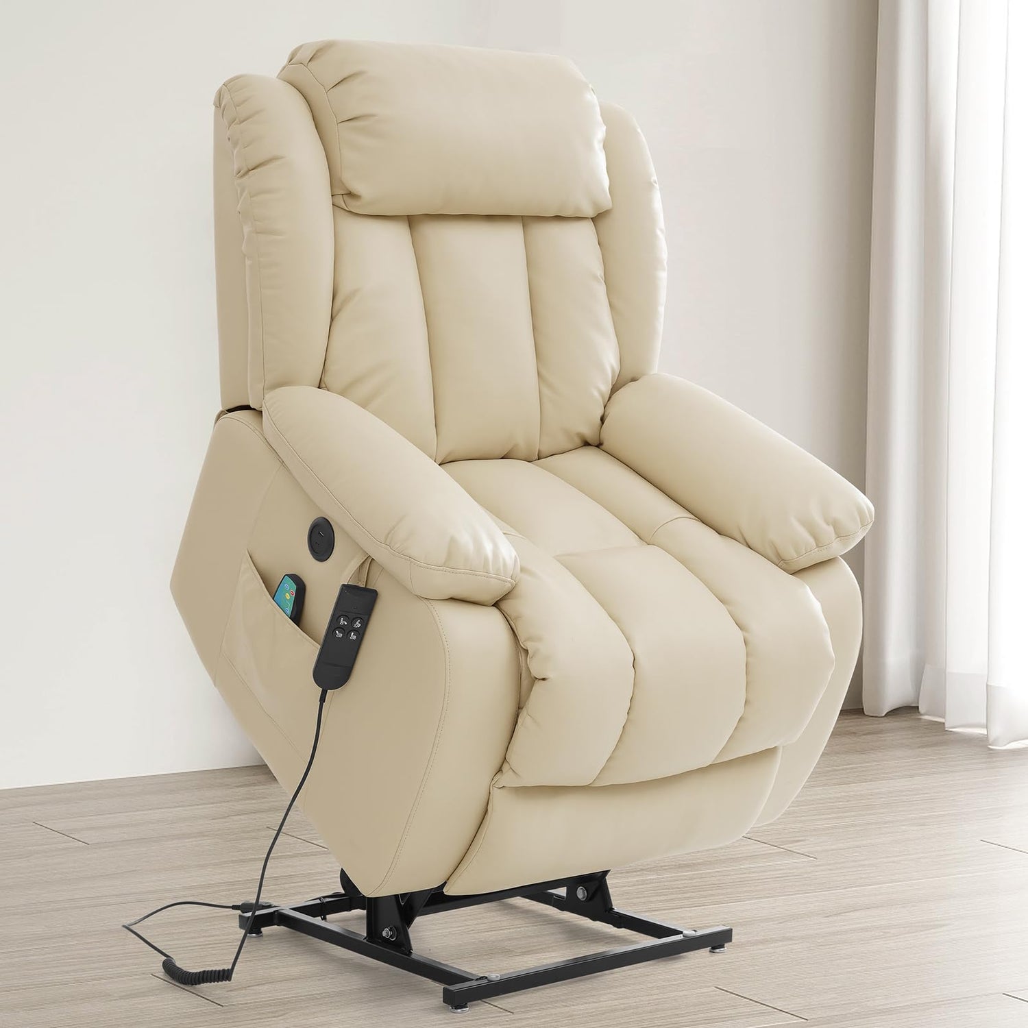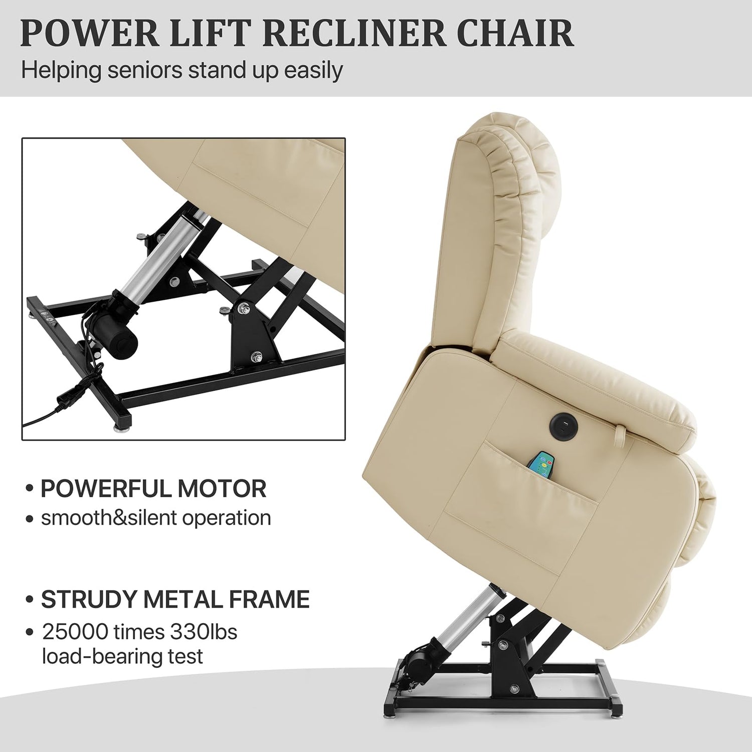 KIMOHOME Dual Motor Large Power Lift Recliner Chair Recliners for Elderly, Infinite Position Recliner Chair with Heat and Massage, Breathable Leather(Beige)