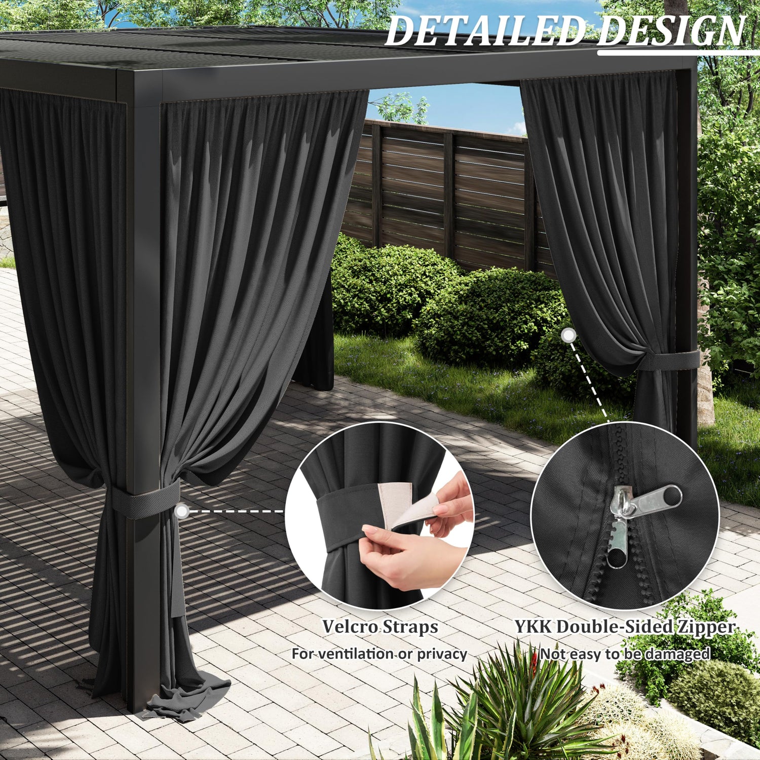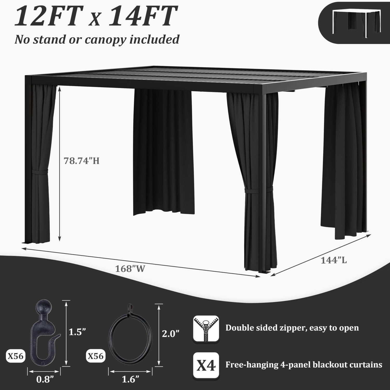 Kimunuk Gazebo Universal Replacement Privacy Curtain,12'X14' Gazebo Outdoor Waterproof Curtains, 4-Panels Sidewall Curtains with Double Zipper for Patio, Garden and Backyard (Only Curtains, Black)