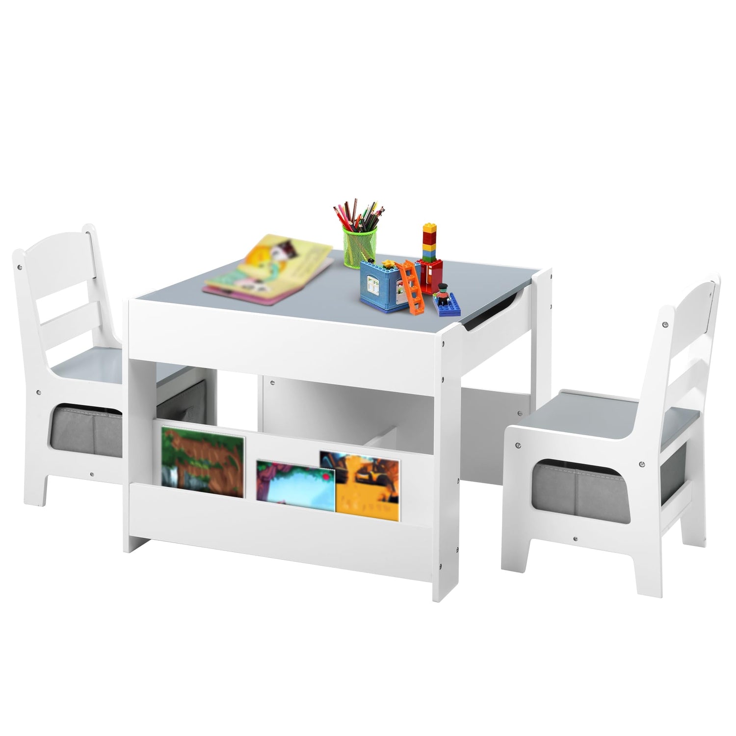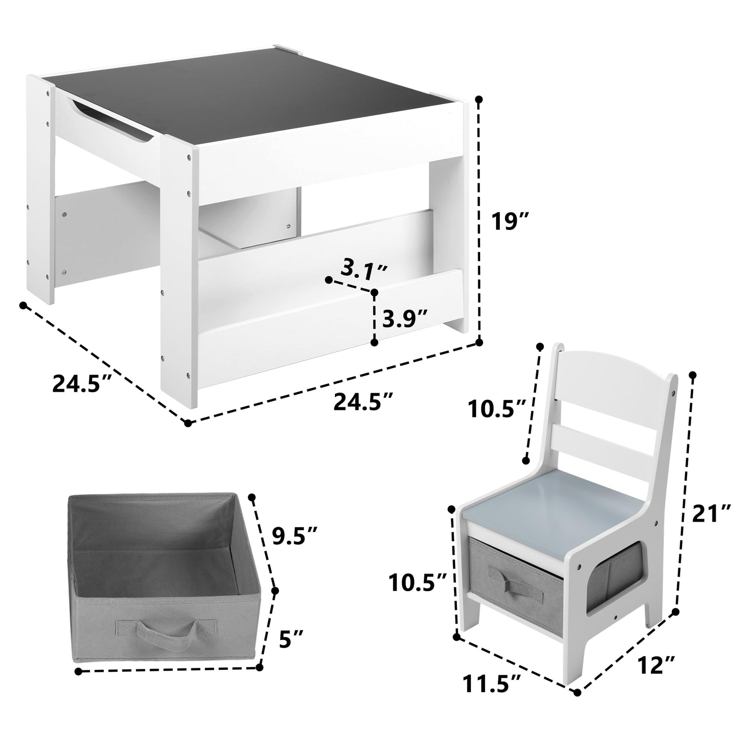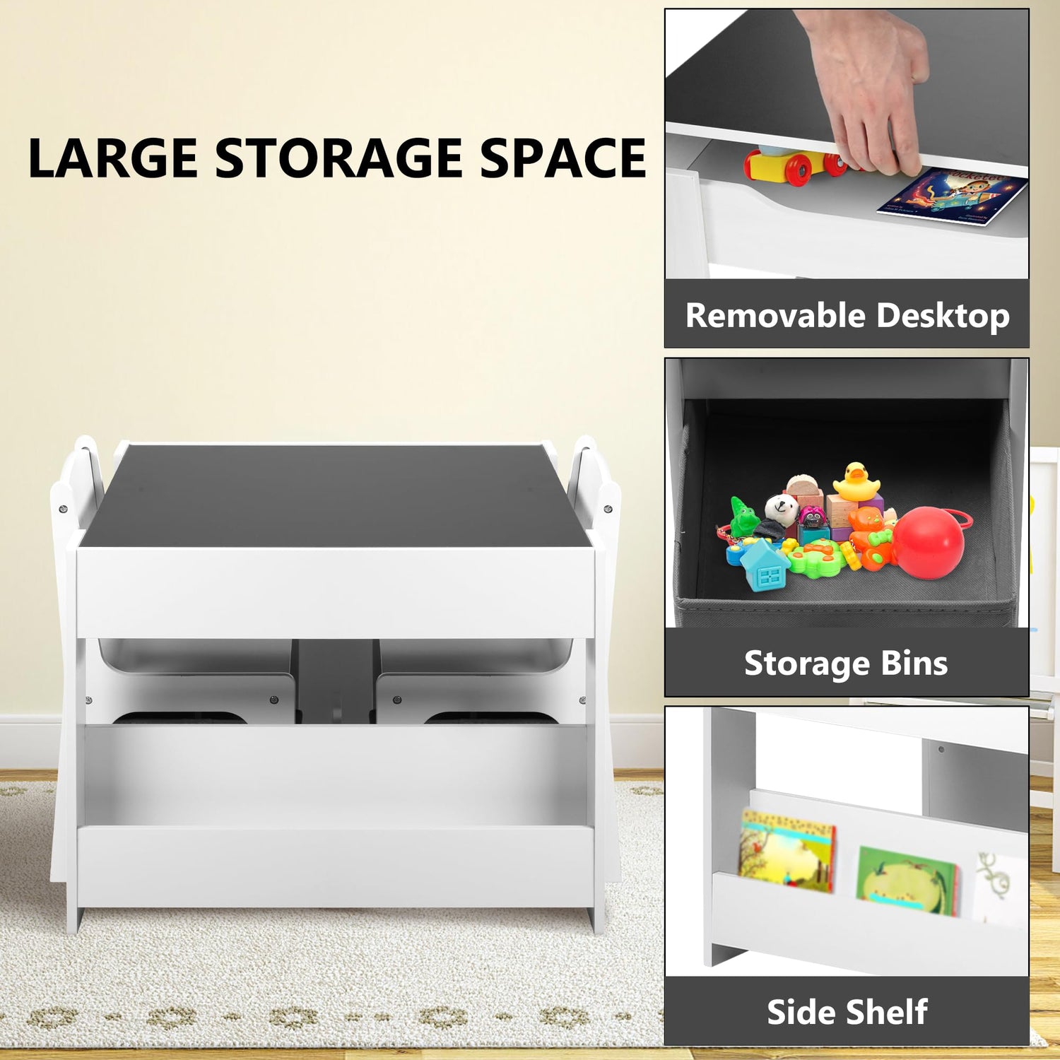 - POWERFUL STORAGE: The bottom of the chairs have removable canvas drawers for storing child's toys, books, crayons, etc. The large storage compartment inside the table can also be used to store building blocks, etc. Wide flip up groove is convenient for parents to remove and convert. After activities, just move the chairs under the table compactly.