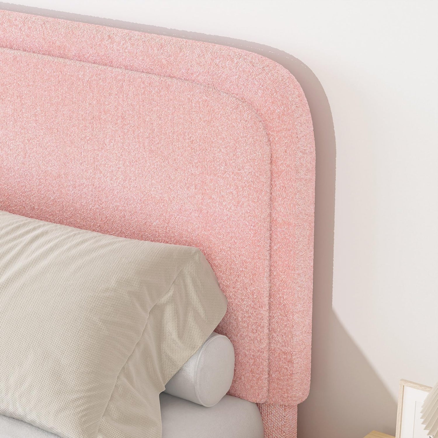 - Fluffy Boucle Fabric: The pink-colored bed frame is upholstered in a cloud-like terry fabric that is soft to the touch while providing a fluffy texture. Boucle fabric all-over fabric cover for bold style, filling your home with warmth and calm so you can sleep in style