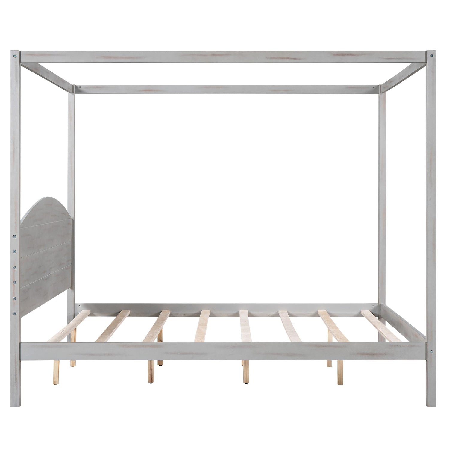 Harper & Bright Designs Grey Wash King Size Canopy Bed Frame with Headboard and Slat Support