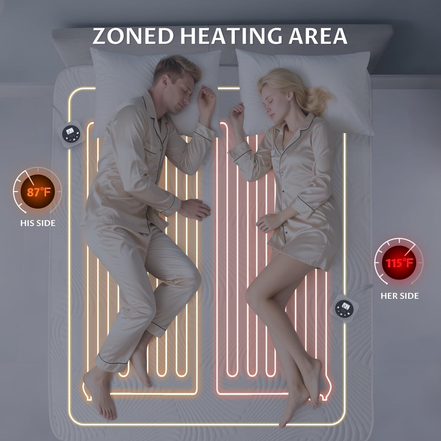 - [Dual Control Settings]: Enjoy personalized comfort with dual-zone heating, allowing each side of the bed to be adjusted independently to the desired temperature, perfect for couples with different preferences