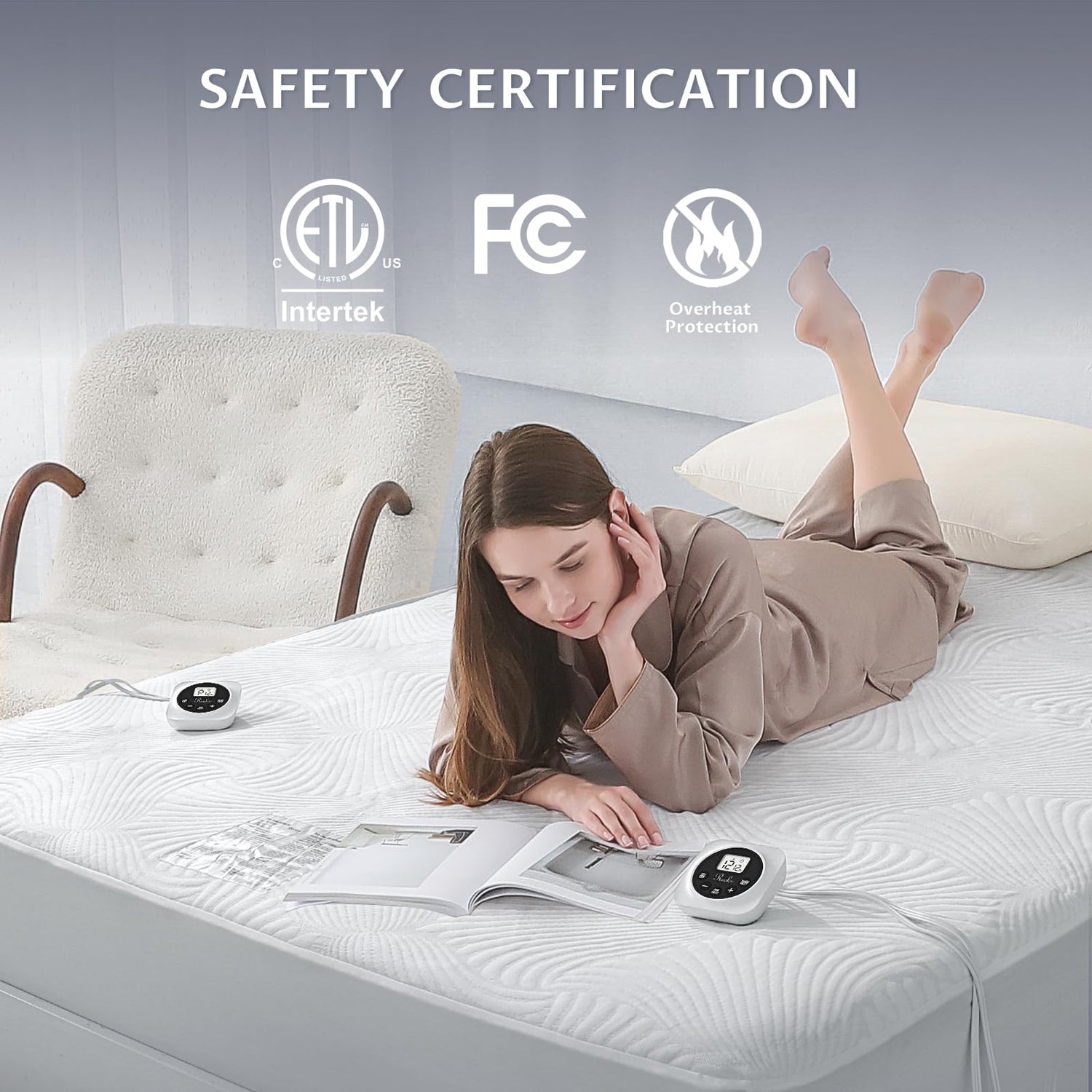 - [Enhanced Safety & Protection]: Rest easy with built-in overheating protection and certifications including ETL and FCC compliance, ensuring your electric mattress pad meets stringent safety and quality standards for worry-free use night after night