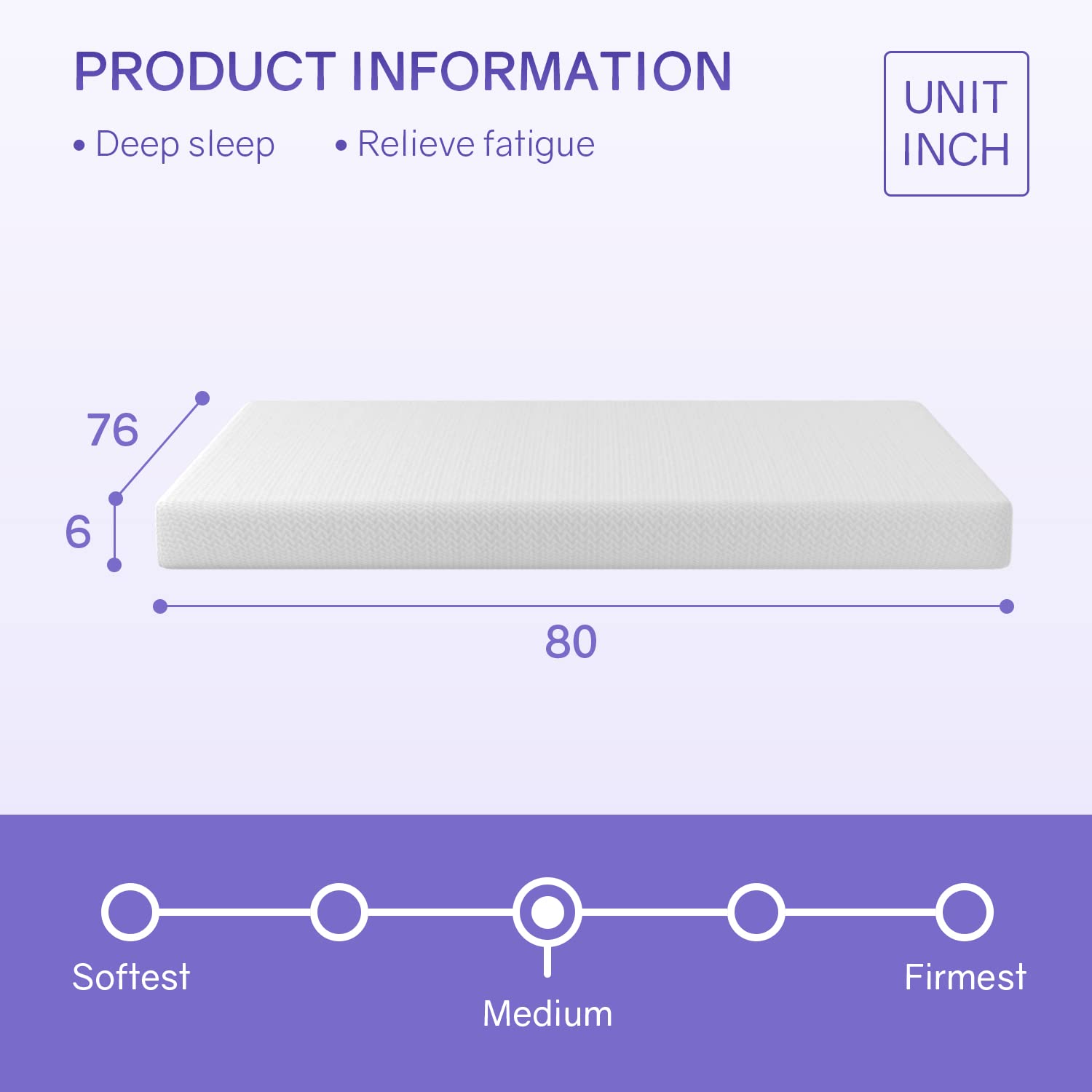 King Size Mattress Fiberglass Free 6 Inch Green Tea Cooling Gel Memory Foam Mattress in a Box,Medium-Firm,Pressure Relief&Temperature Regulation,CertiPUR-US Certified,White