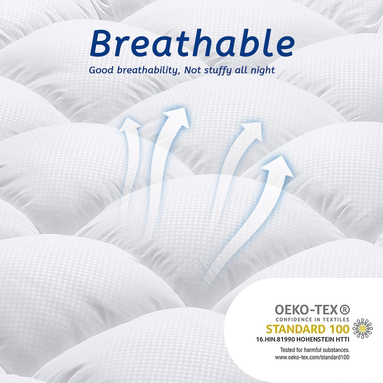 - Breathable & Comfortable: Enjoy breathability and superior comfort with our cloud-like surface and 3D&7D fiber three dimensional structure. It allows the mattress topper for air circulation, keeping you cool without the heat and sweat of memory foam or traditional mattresses.
