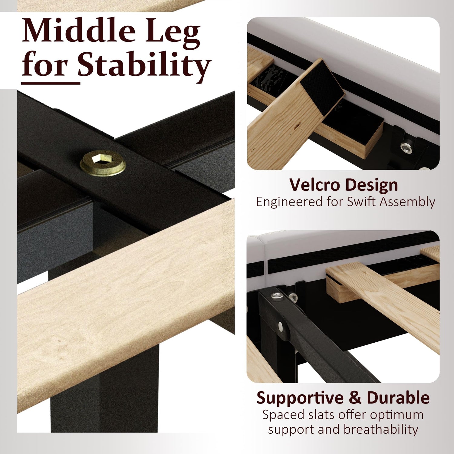 - 【Sturdy Construction】The bed frame is made of high-quality metal and thick wood, with a sturdy structure and stable frame. It can support up to 800 pounds, ensuring durability