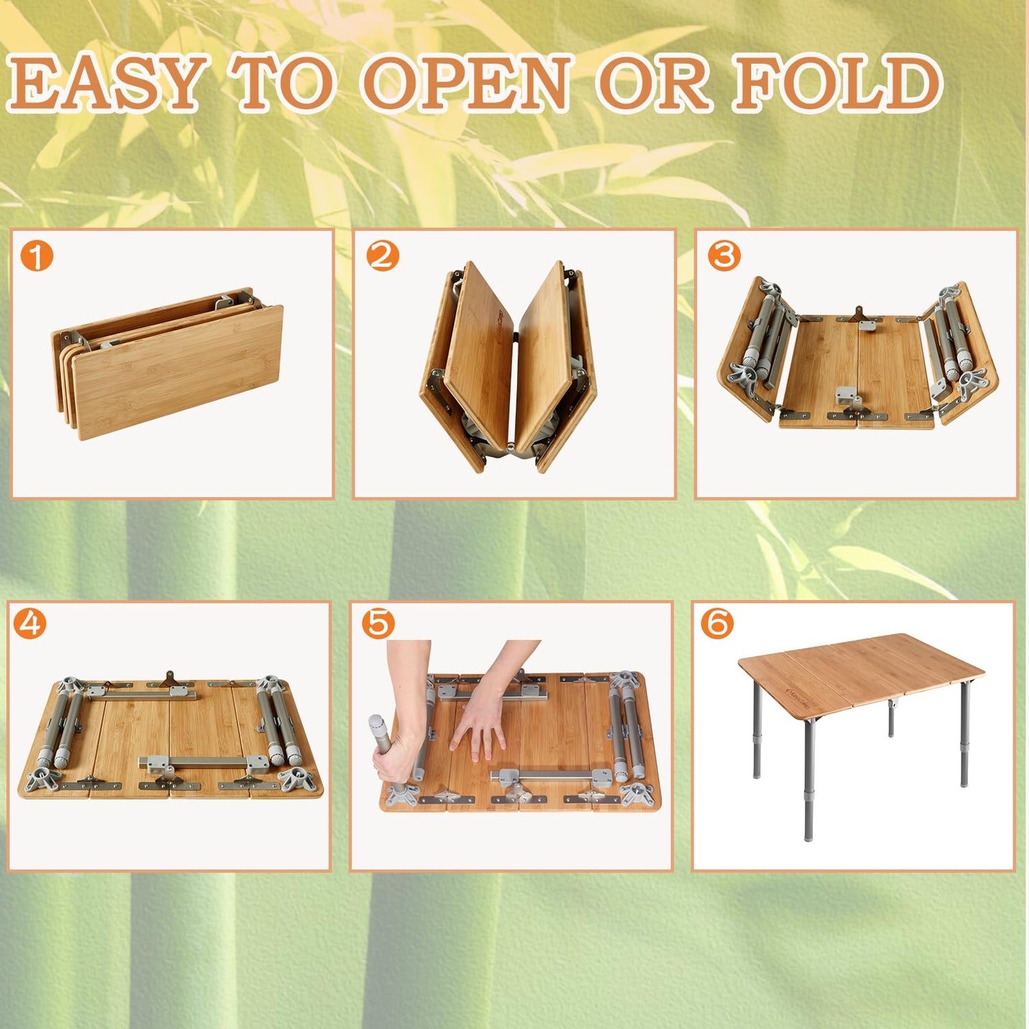 - 【MULTI-FUNCTION FOR DAILY USE】This portable bamboo folding table can be used as a RV table, picnic table, grill side table, dining table, BBQ Table,laptop table, gaming table... Perfect for Camping, Beach, Backyard, Party Patio, Fishing, Sport events, Kitchen, Study and so on in living room, bedroom.