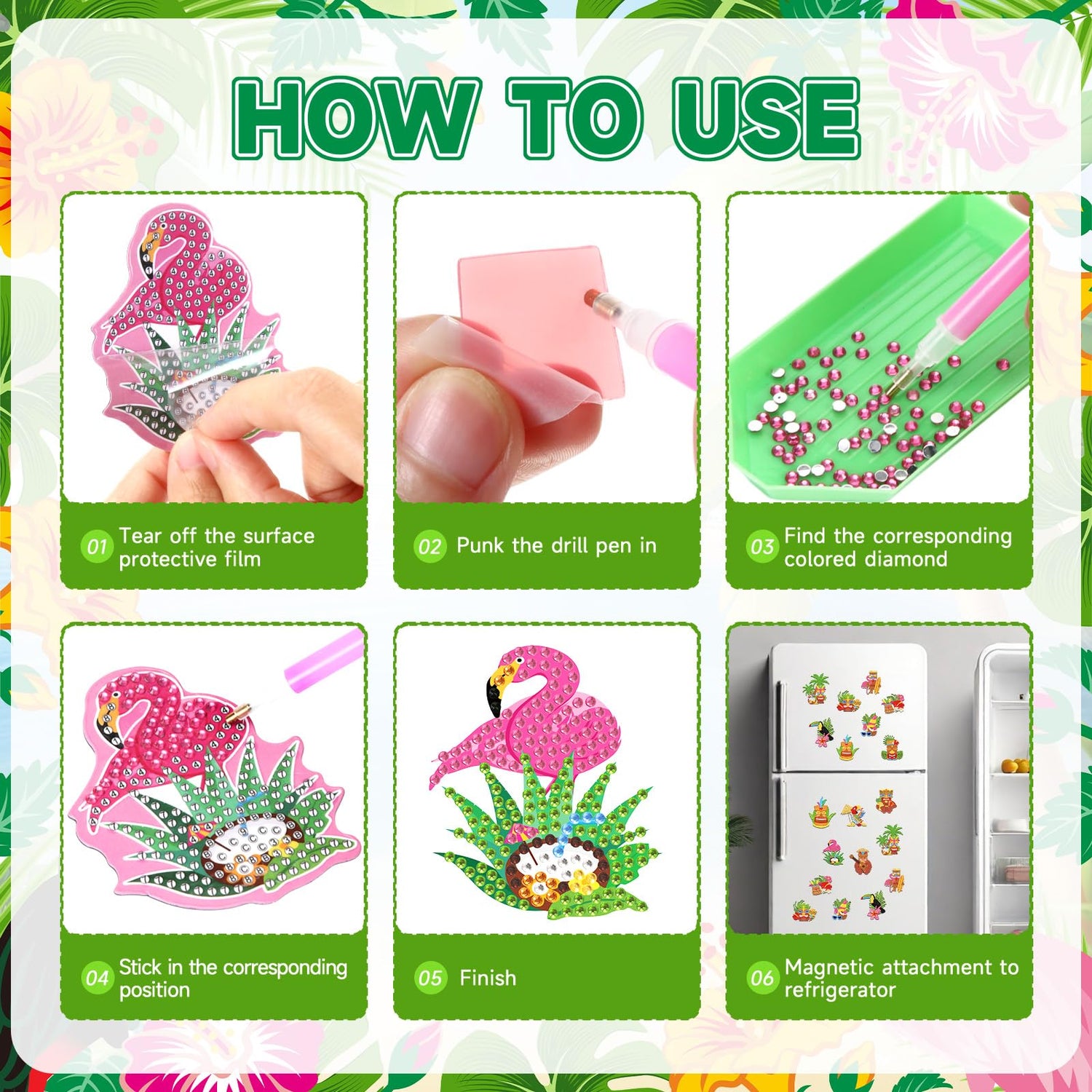 - Easy to Operate: these diamond art refrigerator magnet sets are easy to operate for most people; After tearing off the protective film on the surface, pour the rhinestones of the pattern you want into the tray; Just apply clay on the pen, stick the rhinestones with the drill pen, and arrange them in numerical or alphabetical order to the correct position