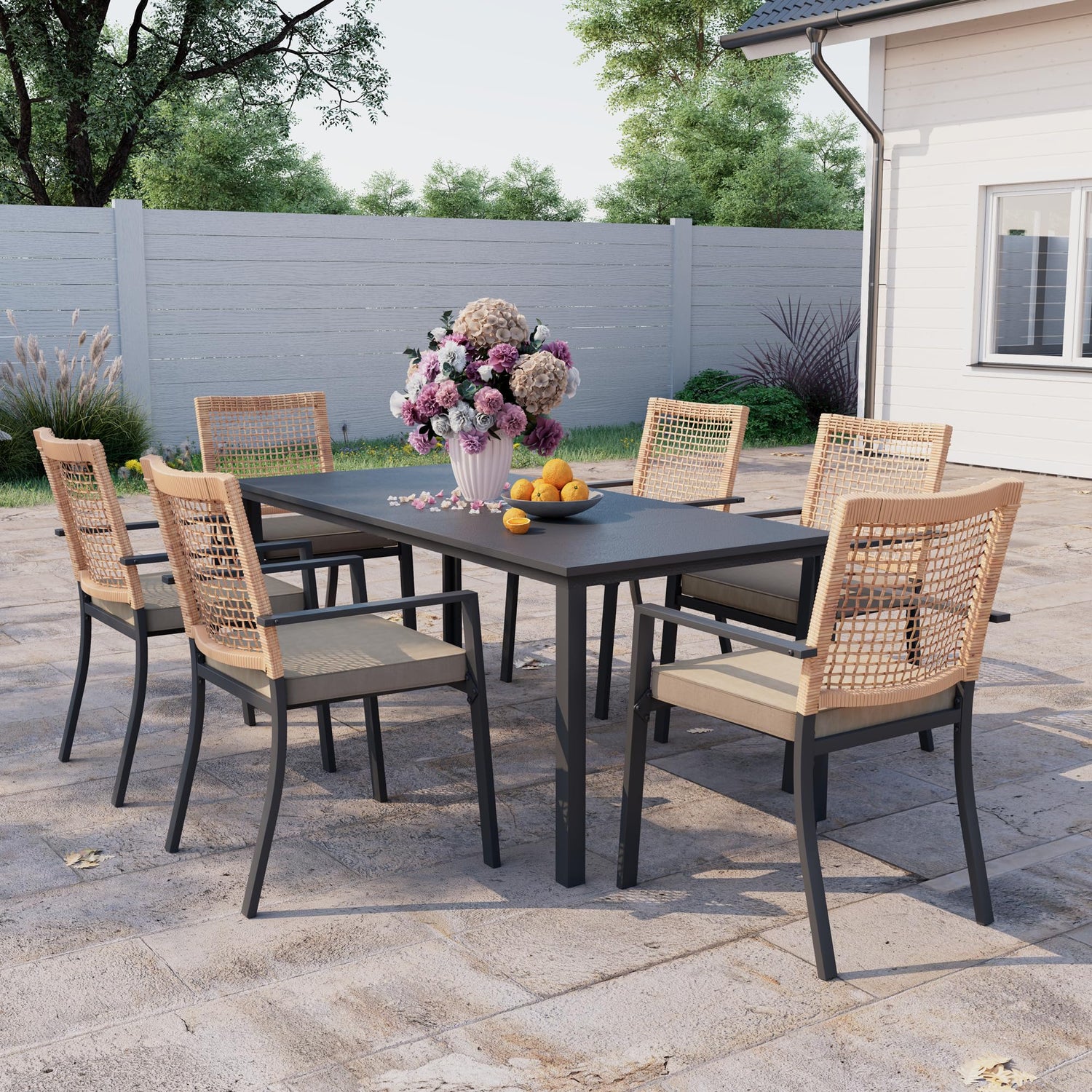 - 【Stylich Outdoor Patio Dining Set】This 7-piece outdoor dining set creates a warm and welcoming space for your gatherings. The stylish rattan design and smooth lines integrate effortlessly with almost any home décor or outdoor environment. Perfect for use in gardens, balconies, patios, porches, poolside areas, and yards.