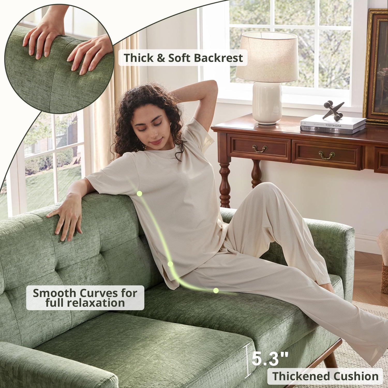 Kingfun 65.2" W Loveseat Sofa, Mid Century Modern Decor Love Seat Couches for Living Room, Button Tufted Upholstered Furniture, Solid & Easy to Install Small Couch for Bedroom Office Apartment, Green