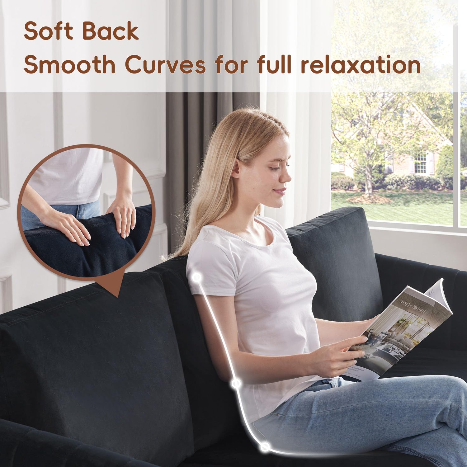 - Comfy and Soft Velvet: The sectional sofa is made of soft velvet fabric and high-density foam. When you sit down to relax on the l shape couch sofa, you can fully feel the skin-friendly feeling of the velvet couch. Thicker fluffy tufted backrests surround you in cloud-like softness. Let you enjoy a wonderful day with your family and guests.