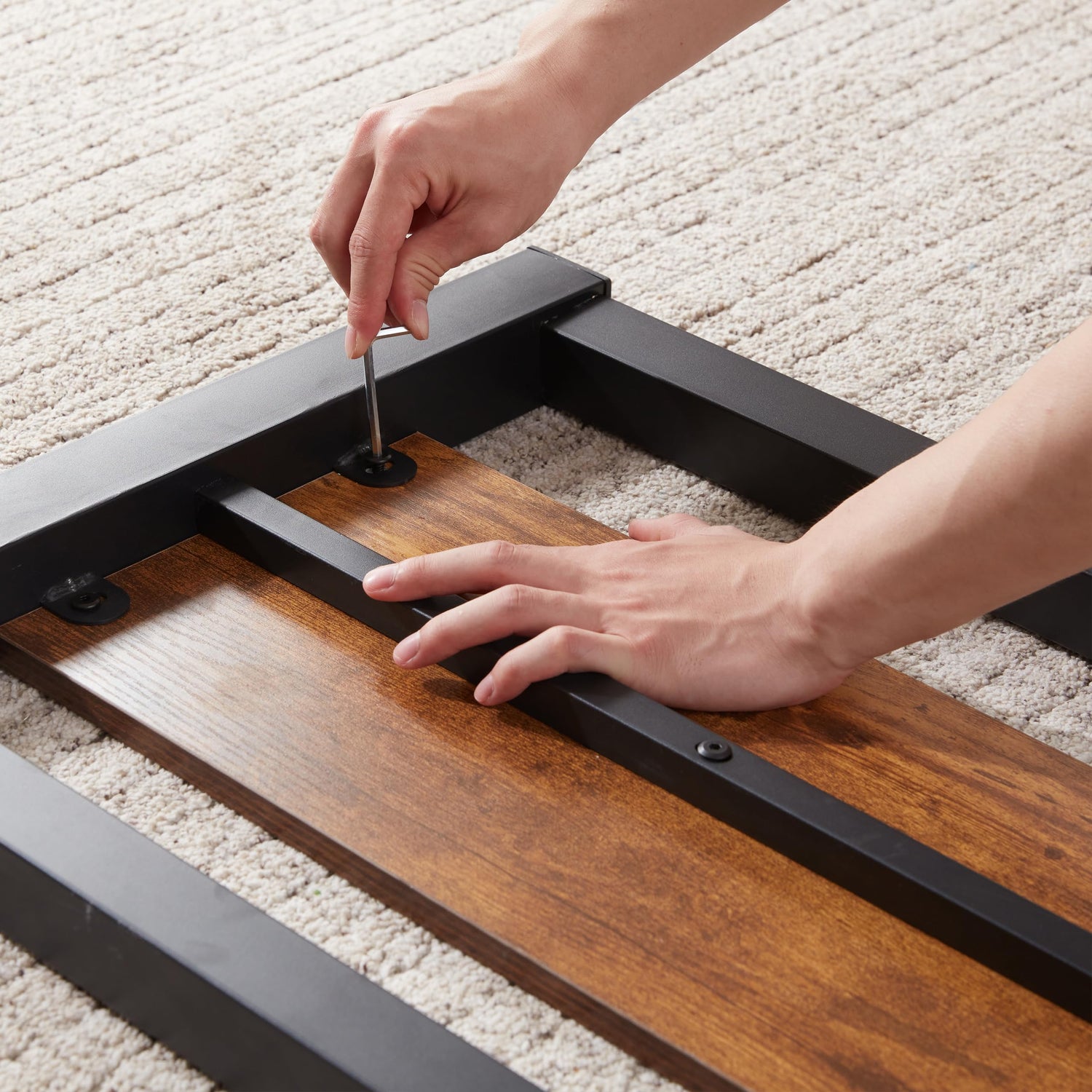 - [ DURABLE MATERIAL ] The black metal frame of the headboard uses screw and welding technology to ensure the durability and stability of the queen headboard only. Sustainably sourced brown wood boards, non-toxic treatment, no smell. The wood headboard queen has good reliability and provides you with good back support.