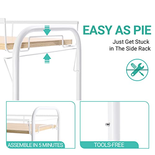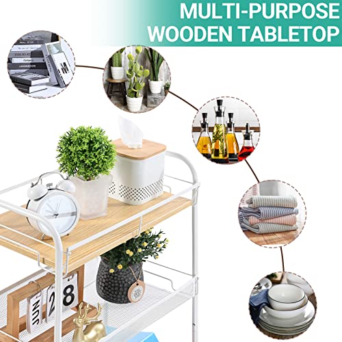 KINGRACK 4-Tier Rolling Cart,Metal Utility Cart with Wooden Tabletop,Easy Assemble Mobile Storage Trolley On Wheels,Craft Storage Cart for Bedroom Kid's Room Office Kitchen Bathroom,White