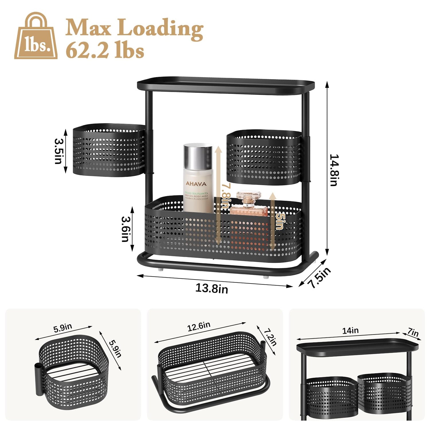 - 360 Degree Smooth Rotation: The two baskets of the Counter Organizer Rack can rotate smoothly and the rotating design allows you to easily get the items from all sides.