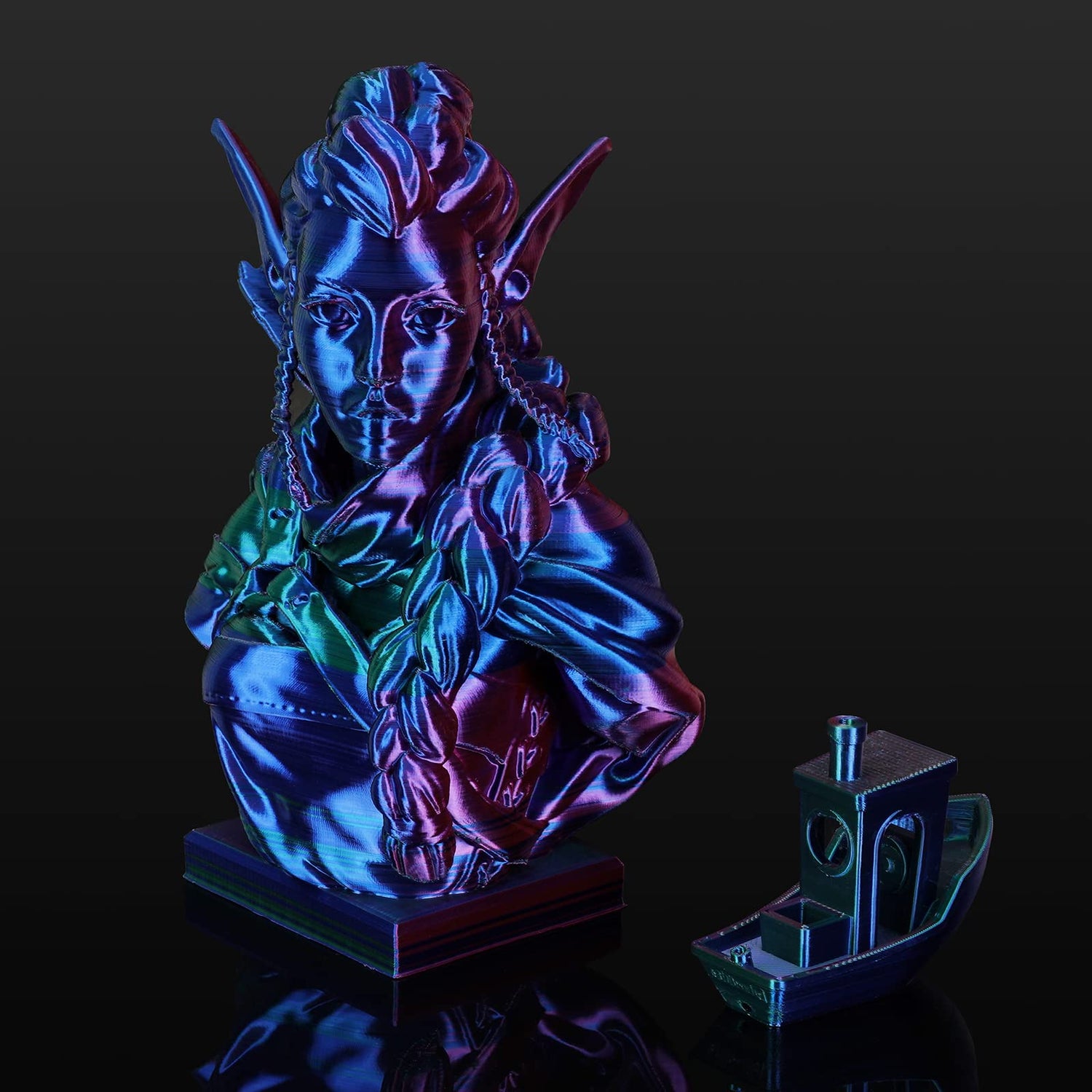 - TRI Color Appearance: Different colors at different angles,you can see red,green and blue ,Three colors are integrated in PLA filament, and multi-color printing can realize three colors of a model, so that printing is no longer boring.
