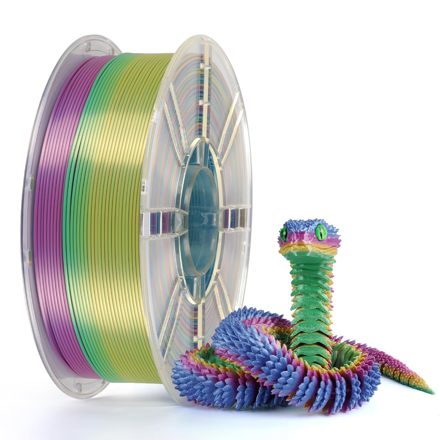 - 【Color Changing Filament】Rainbow Filament has a unique silky texture, the surface of the print is smooth and shiny, Pla Filament 1.75mm let your prints have different colors on every sides. Four colors per inch.