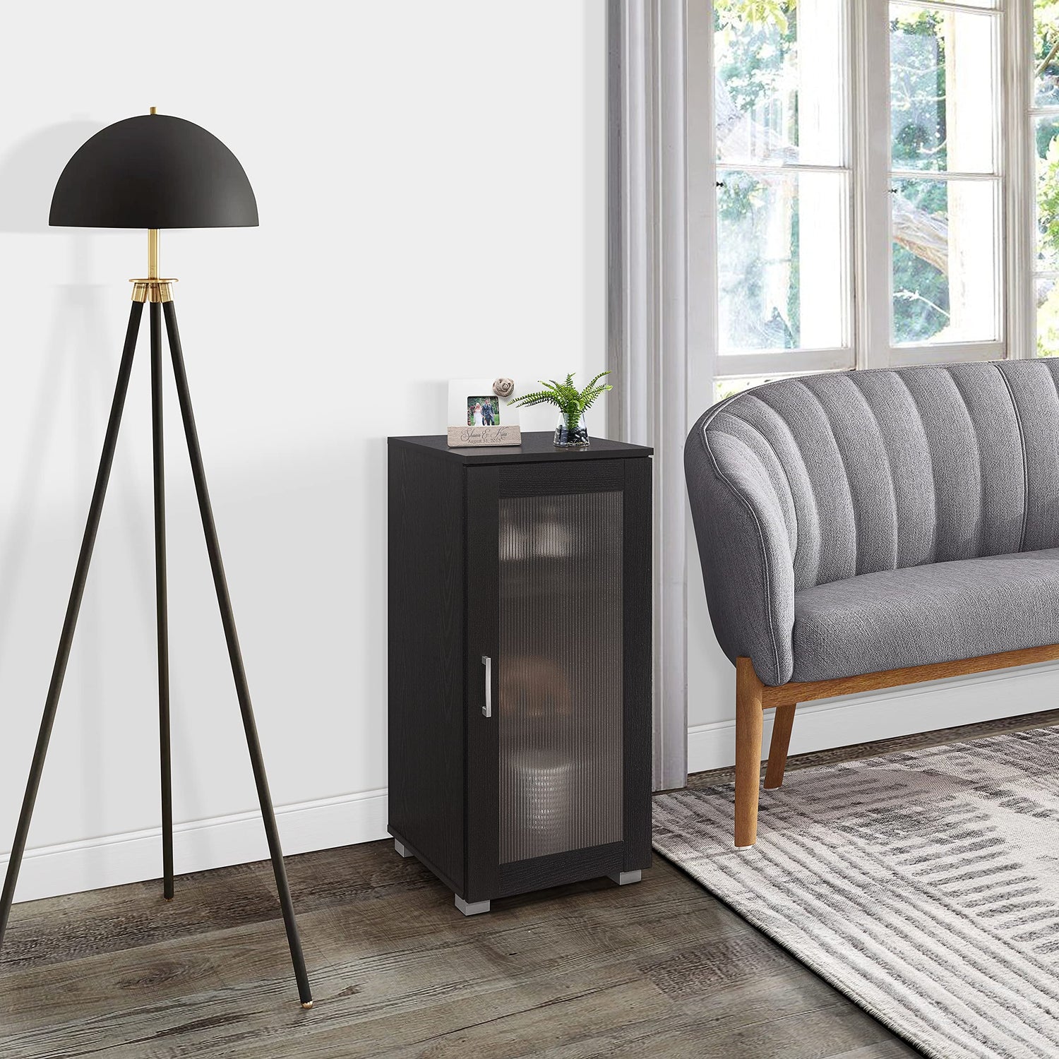 - SIZE AND HOLDING CAPACITY: This accent storage cabinet table features a 1 frosted glass-filled door with 2 adjustable shelves inside to hold your accessories. Our accent cabinet with glass doors has an overall height of 34 inches, 16 inches in width, and 16 inches in depth with a chrome metal handle. It is an overall aesthetic blend of style and utility, which makes it a visually appealing and versatile addition to any space.