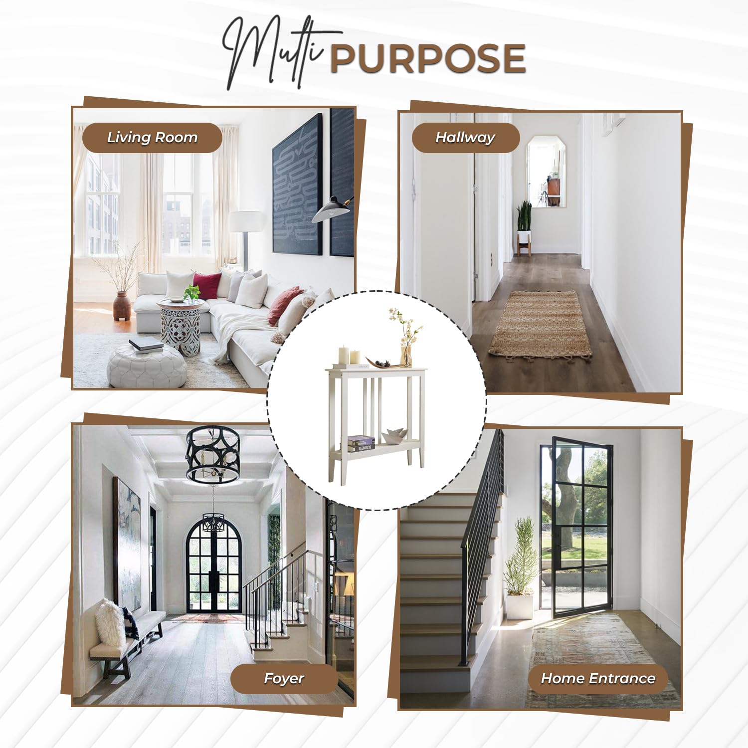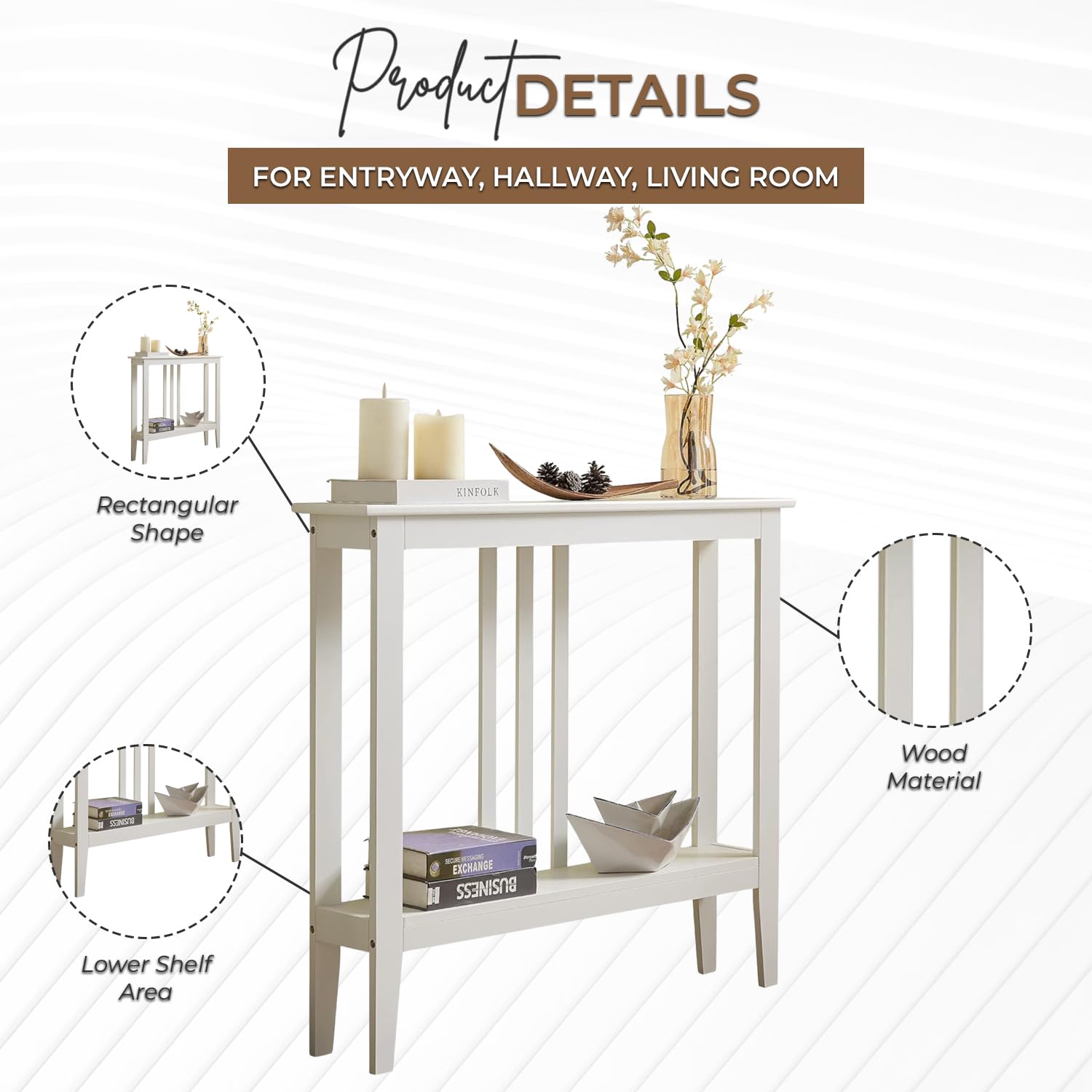 Kings Brand Furniture - Entryway Table - Narrow Console Table - Console Table with Storage - Hallway Decor - Wood Console Tables for Entryway - Narrow Console Sofa Side Table - Foyer - White