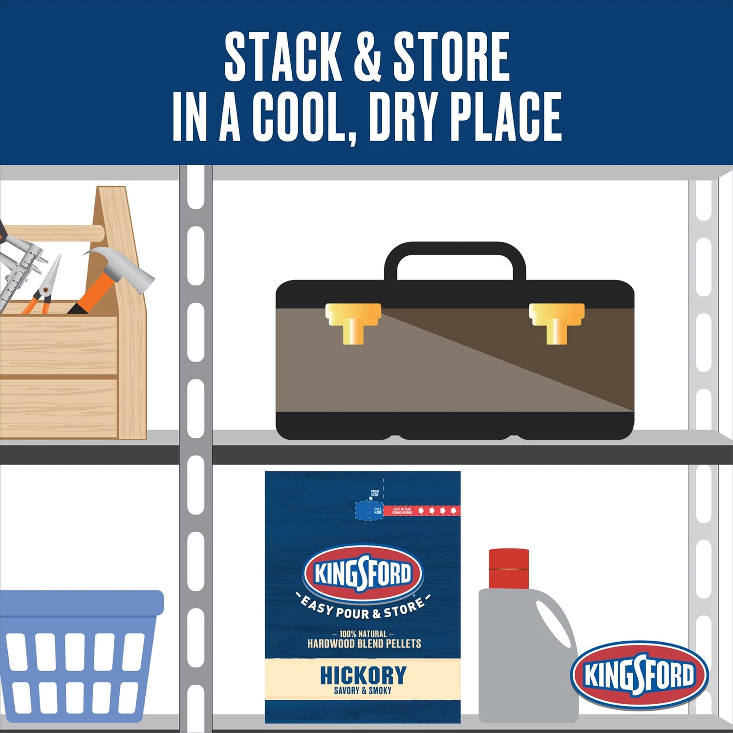 Details: Embrace the strong, savory and hearty flavor of classic hickory. Now you can get Kingsford quality flavor in any pellet grill for unbeatable hickory smoke flavor. The savory smoke of 100% hickory wood is the grillers choice for beefy favorites like ribeye, prime rib roast and short ribs. Enjoy excellent performance in all pellet grills, including Traeger and Pit Boss, and enhance your grilling experience by adding full-bodied flavor to just about everything you cook. Not just for grilling, these smoker pellets are also great for baking and roasting. These all-natural pellets deliver the bold, savory taste of real hickory wood without compromising quality. No fillers. No binders. No dyes. No preservatives.