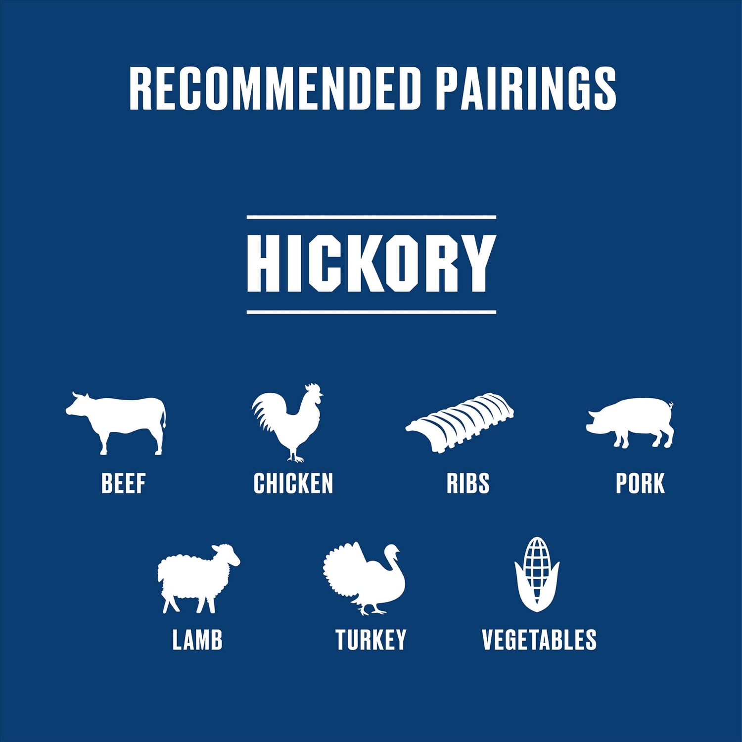 - VERSATILE FLAVOR PAIRINGS: Strong, savory and hearty, hickory is the griller’s choice for beefy favorites like ribeye, prime rib roast and shortribs dishes
