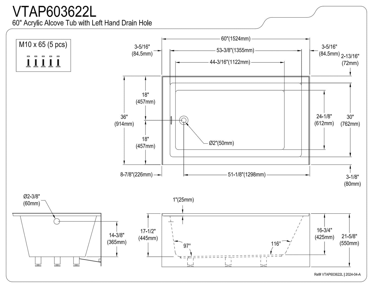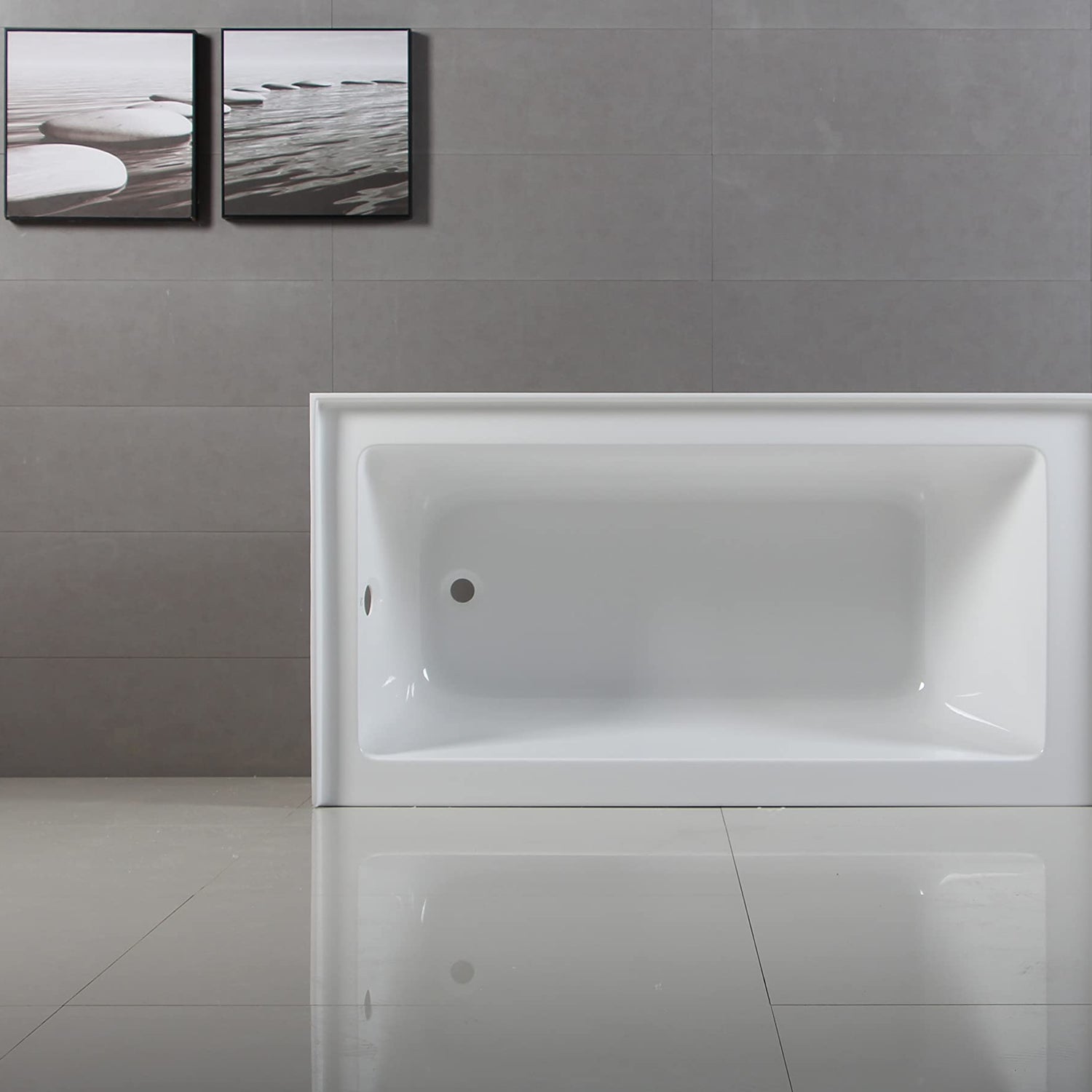 Details: Create lasting memories of bubble baths with your children or relax from the stresses of the day with a top-notch alcove tub by Kingston Brass. Extremely user-friendly with effortless installation and simplistic construction, the alcove tub is the perfect addition to your home if you are looking for pristine performance and polished refinery. The Aqua Eden 60-inch acrylic alcove tub with left hand drain hole will wholly beautify your home for years to come thanks to its durable and easily repairable acrylic construction. This bathtub is finished inside and out in a brilliant, high-gloss white that ensures crisp aesthetics and easy care now and well in the future.