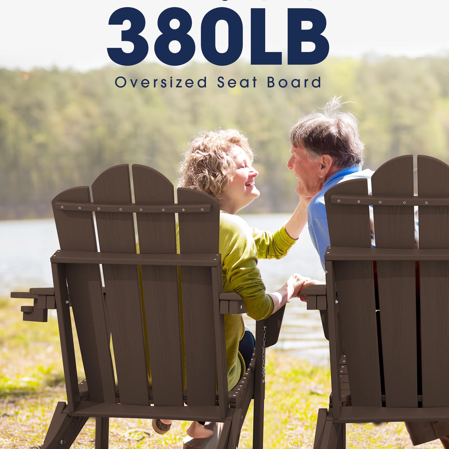 - Oversize Adirondack Chair: Overall Size is 35."L x 29.3"W x 36.2"H, its oversized design perfectly fits most body shape. With the thicker slat, this Folding Adjustable Adirondack chair with cup holder max hold up to 380 pounds of weight.