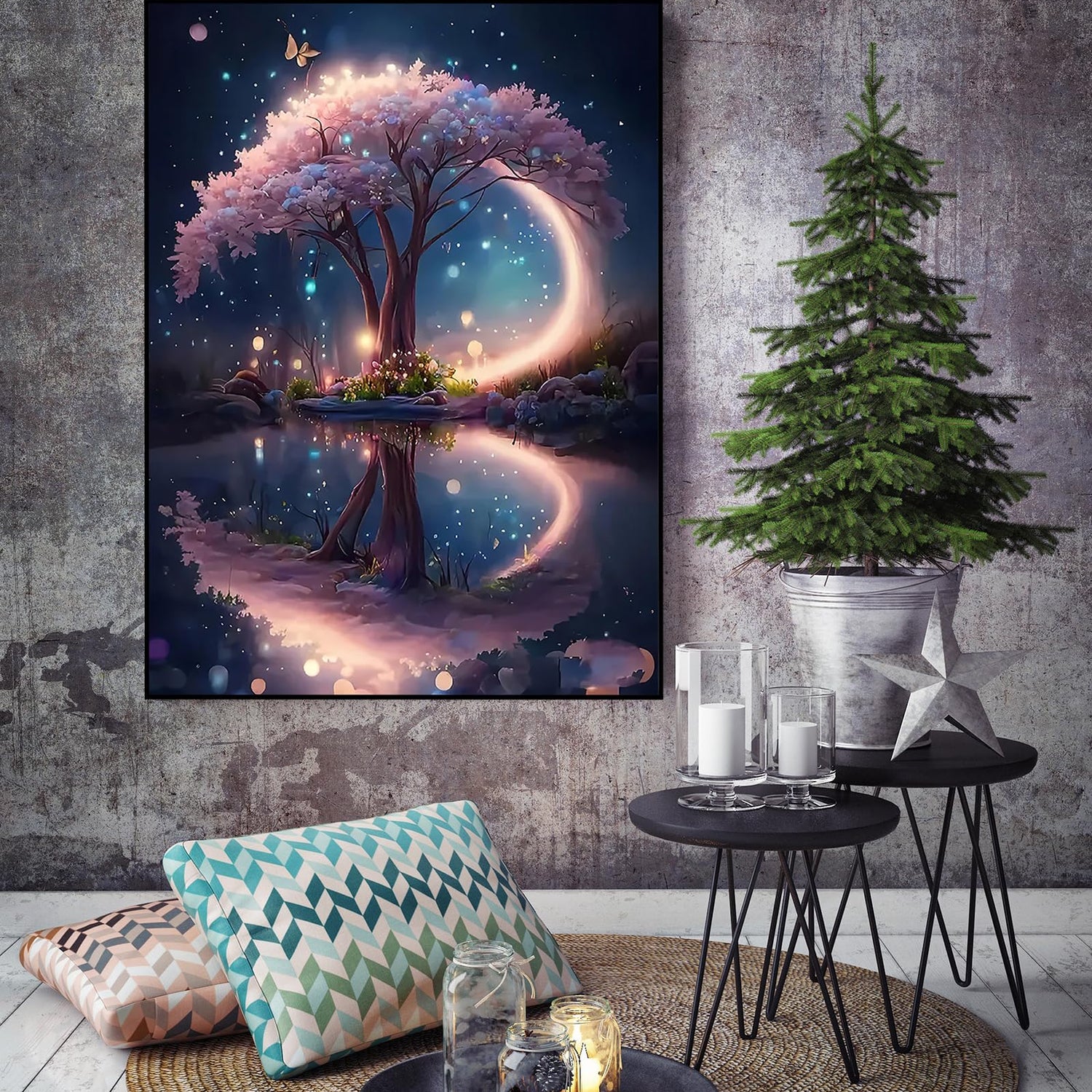 - 【5D Diamond Painting Kits for Adults】Each pink tree diamond art kits comes with all tools in need. Following tools are Included: 1*HD painting canvas, 1*diamond pen, 1*cube diamond tray, 1*red glue clay (2cm *4cm), 1*pen grip, 10*plastic bags for putting diamonds, and enough colorful round diamonds. For each tree reflection in water diamond art painting kit we'll provide 20% diamond more than need.