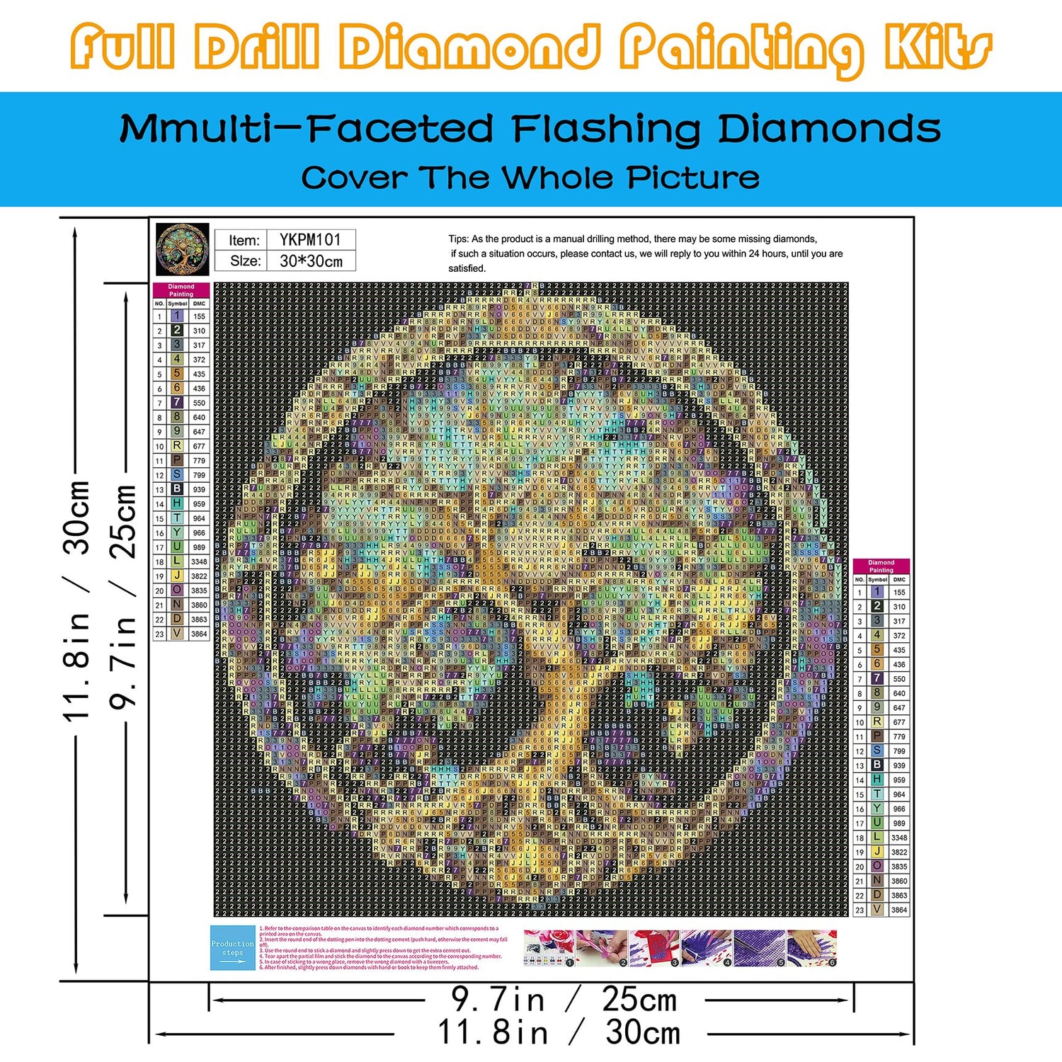 - 【5D Diamond Painting Kits for Adults】Each tree of life diamond painting comes with all tools in need. Following tools are Included: 1*HD painting canvas, 1*diamond pen, 1*cube diamond tray, 1*red glue clay (2cm *4cm), 1*pen grip, 10*plastic bags for putting diamonds, and enough colorful round diamonds. For each kit we'll provide 20% diamond more than need.