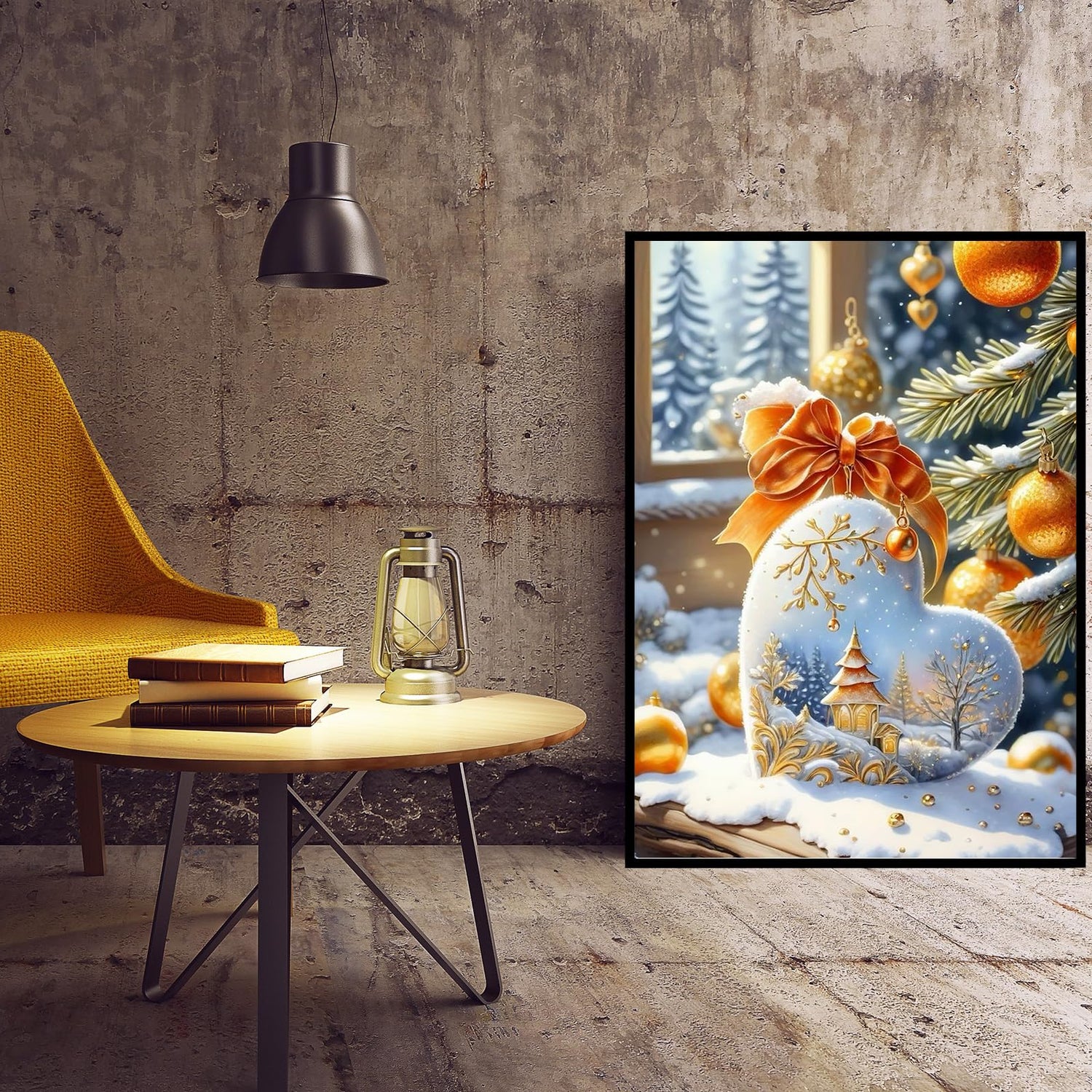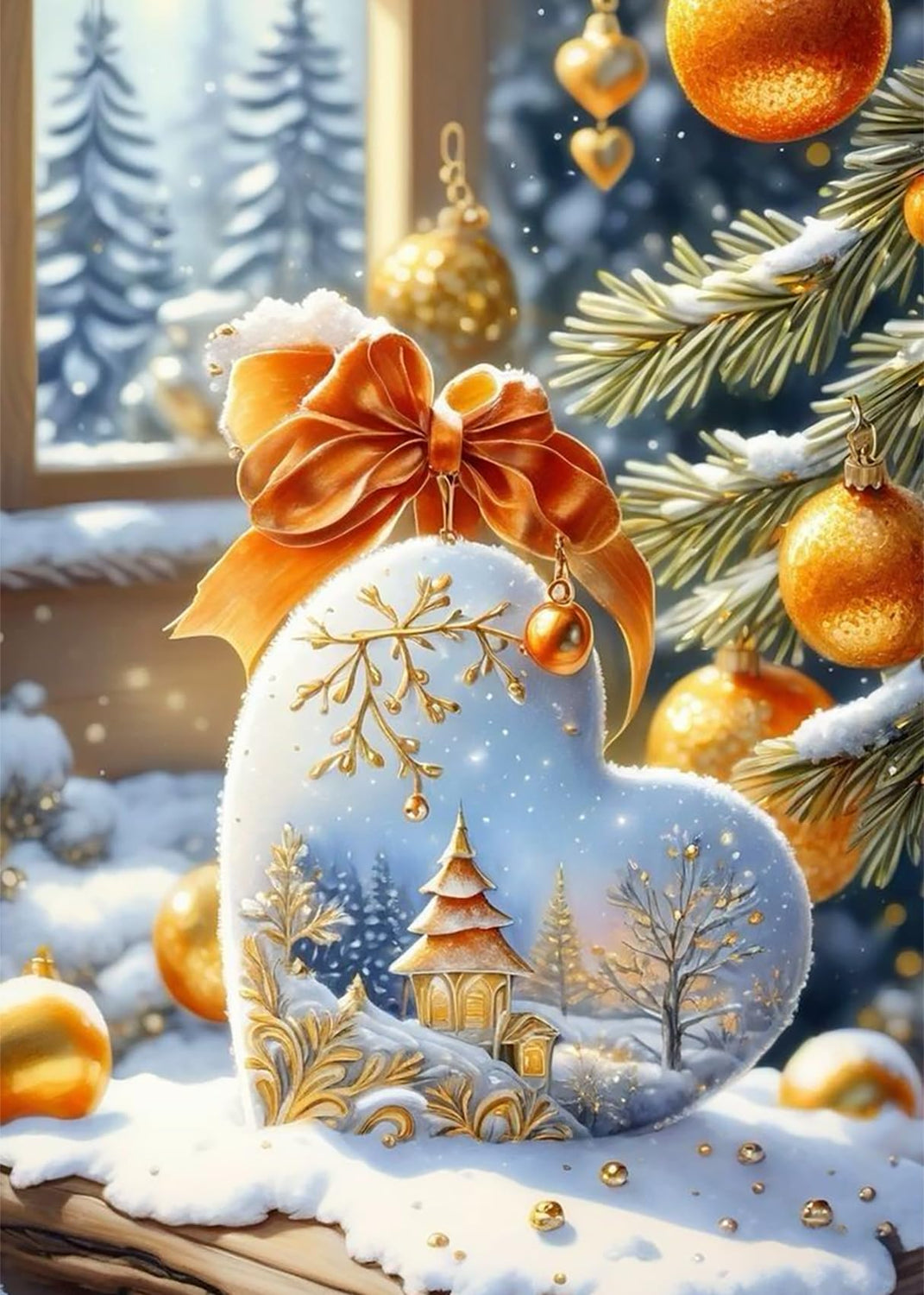 KINPLUB Christmas Diamond Art Kits for Adults Beginners, Christmas Winter Love Heart Diamond Painting Kits for Adults, DIY Full Drill Round Gem Art Dots for Home Wall Decor 12x16 Inch
