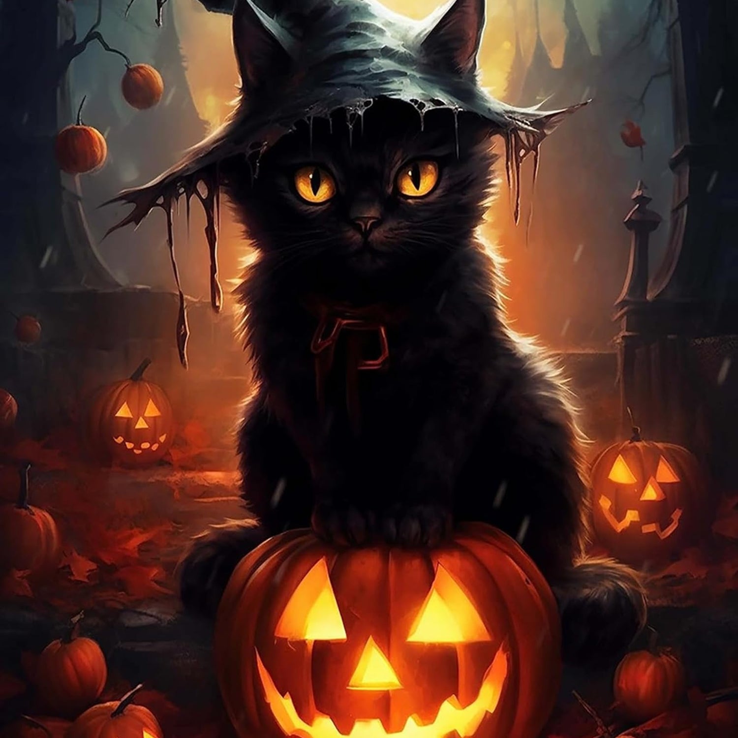 - 【Have More Fun】DIY Halloween diamond painting is a good choice not only for family time, but also for party time with friends and your loved ones. It’s a nice way to reduce stress for adults to improve their hands-on ability. We believe that the black witch cat diamond art kits for adults beginners can be an adorable present also.