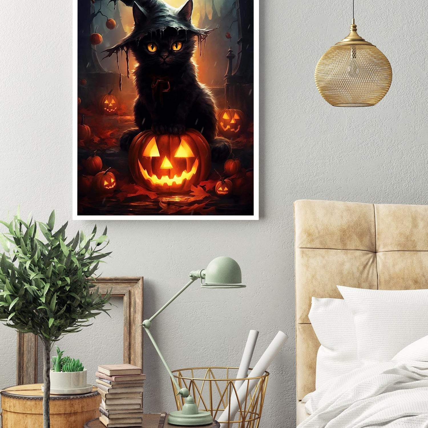 - 【Halloween Home Decor Indoor】Decorated with this Halloween cat diamond art painting, your bedroom, living room, study or office can be more colorful and make your staying in these places more enjoyable. The scenery on adults diamond painting may encourage you and make you feel great all day.