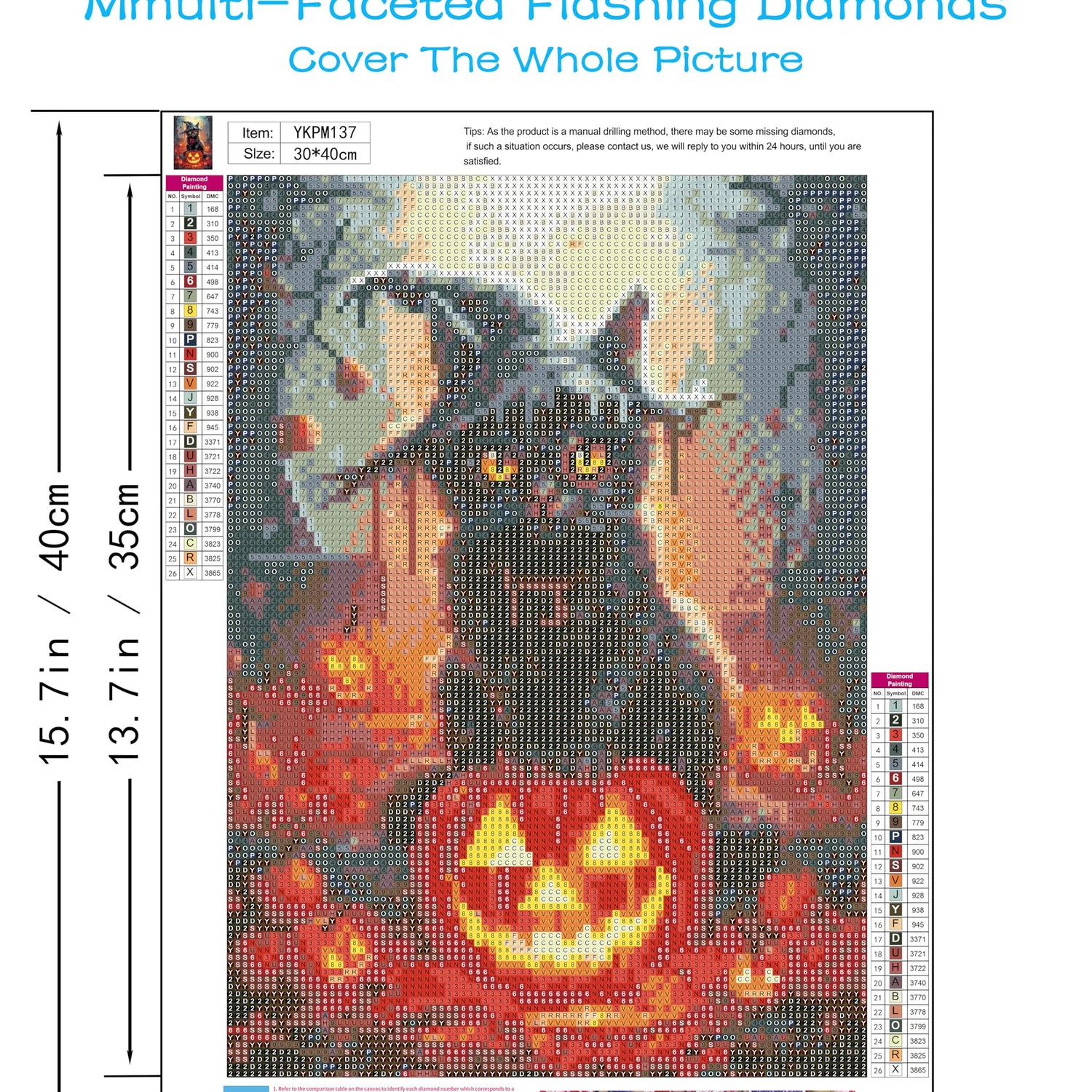 - 【5D Diamond Painting Kits for Adults】Each Halloween diamond art kits comes with all tools in need. Following tools are Included: 1*HD painting canvas, 1*diamond pen, 1*cube diamond tray, 1*red glue clay (2cm *4cm), 1*pen grip, 10*plastic bags for putting diamonds, and enough colorful round diamonds. For each black cat diamond dots kit we'll provide 20% diamond more than need.