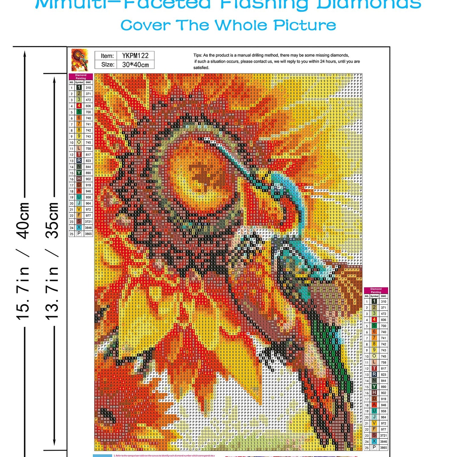 ✮ If you find there is missing diamonds or accessories in your package for this diamond painting, please contact with us and we provide you a brand new one!