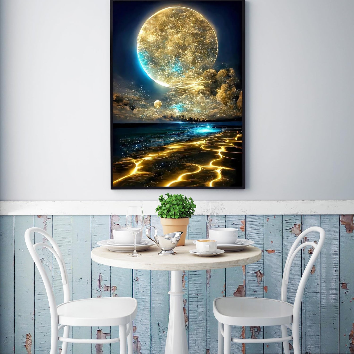 KINPLUB Moon Diamond Painting Kits for Adults, 5D Moonlight Beach Diamond Art Kits for Beginners, DIY Full Round Drill Seaside Landscape Paint with Diamond Dots, Home Wall Decor 12 x 16 Inch
