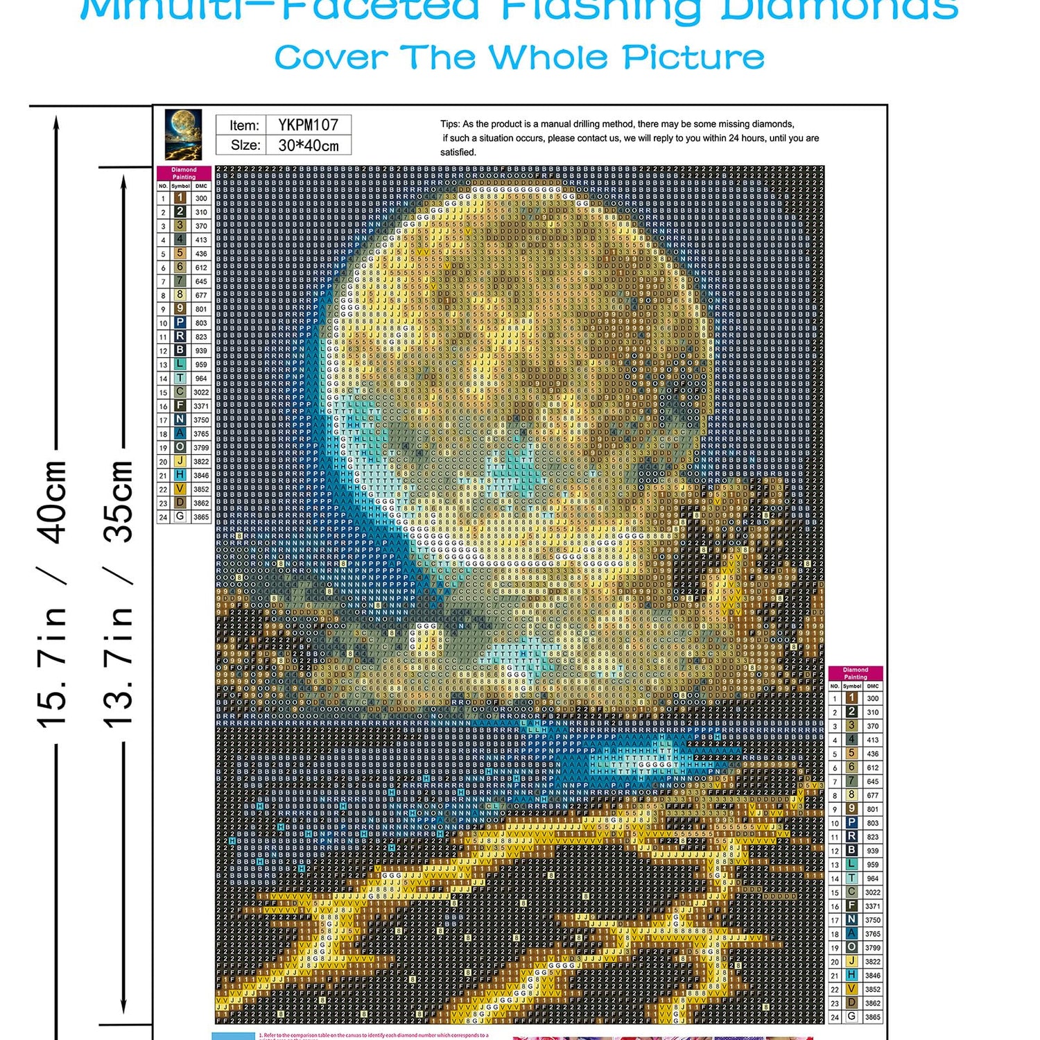 - 【5D Diamond Painting Kits for Adults】Each moon diamond art kits comes with all tools in need. Following tools are Included: 1*HD painting canvas, 1*diamond pen, 1*cube diamond tray, 1*red glue clay (2cm *4cm), 1*pen grip, 10*plastic bags for putting diamonds, and enough colorful round diamonds. For each landscape diamond art painting kit we'll provide 20% diamond more than need.