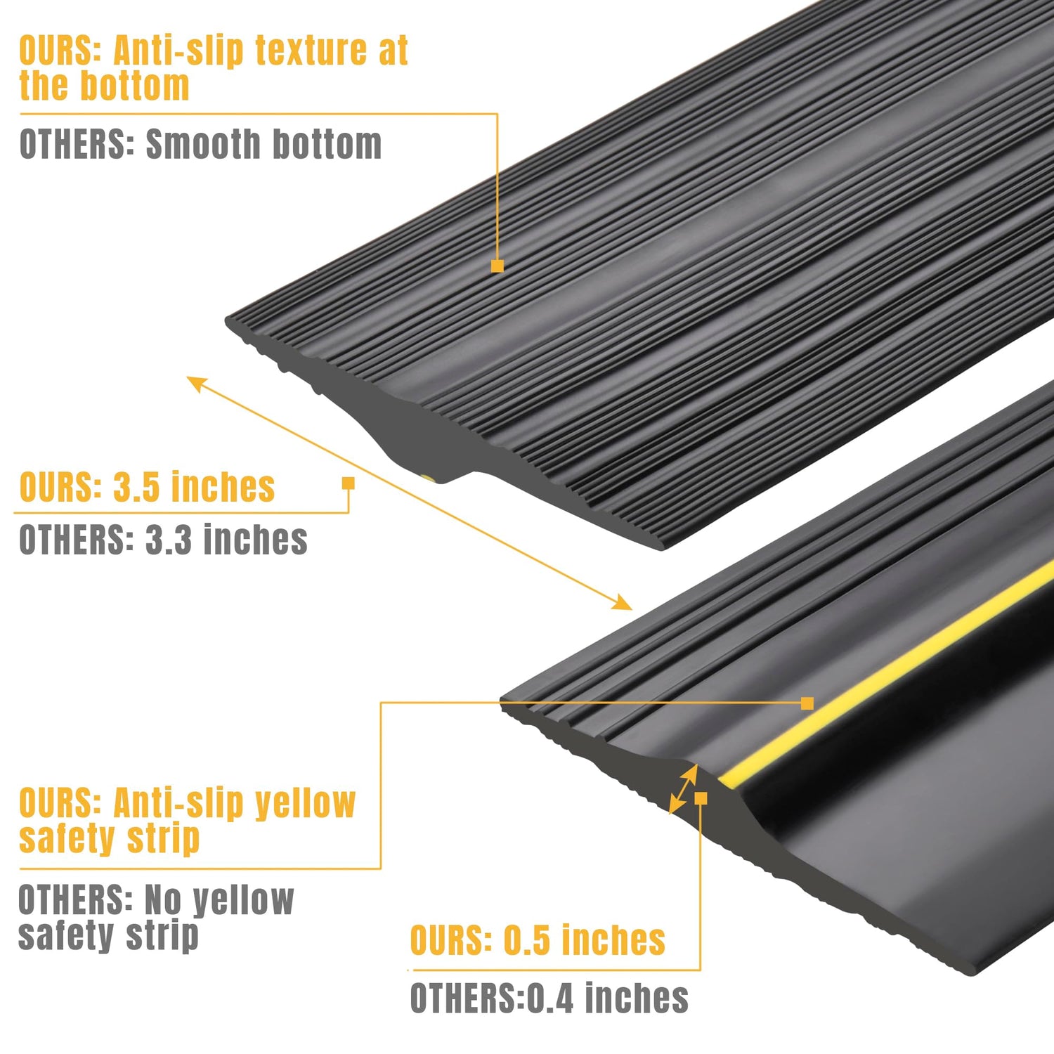 - 【CONVENIENT & INNOVATIVE DESIGN】 - Garage door bottom seal 16 FT length with yellow safety strip to ensure that the seal can be very clearly seen by people entering and leaving. Anti-slip ridges reduce the risk of slipping