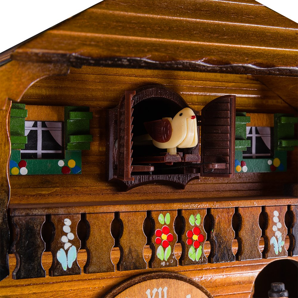 - CUCKOO CLOCK COMPONENTS: Quartz movement makes time more accurate, automatic shut off in the darkness by light sensor, easy setup with 1 button and 1 switch