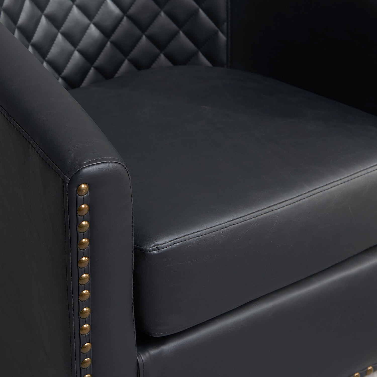- Durable and Stylish Faux Leather: Upholstered in high-quality, waterproof PU, the swivel barrel chair is both stylish and practical. Its diamond-tufted pattern and nailhead trim add a sophisticated touch, while the durable material ensures it can withstand the rigors of high-traffic environments.